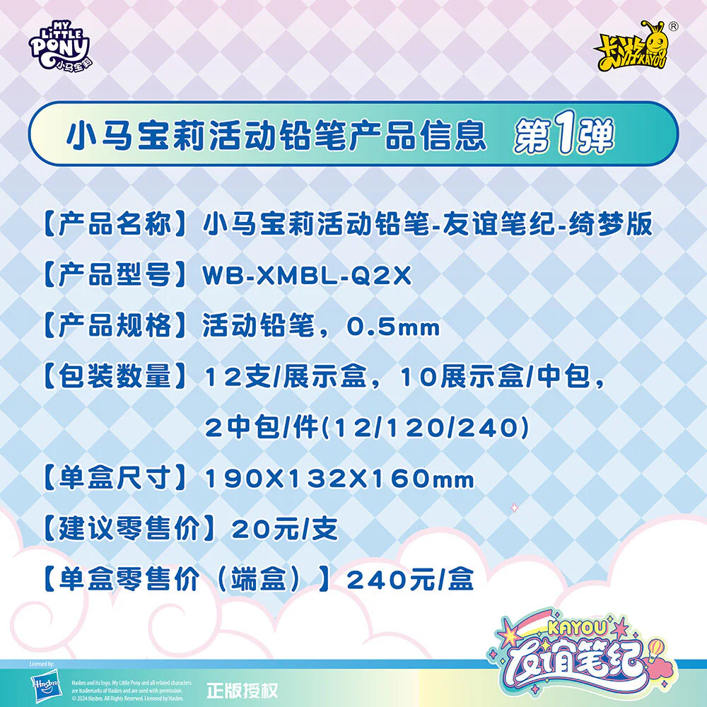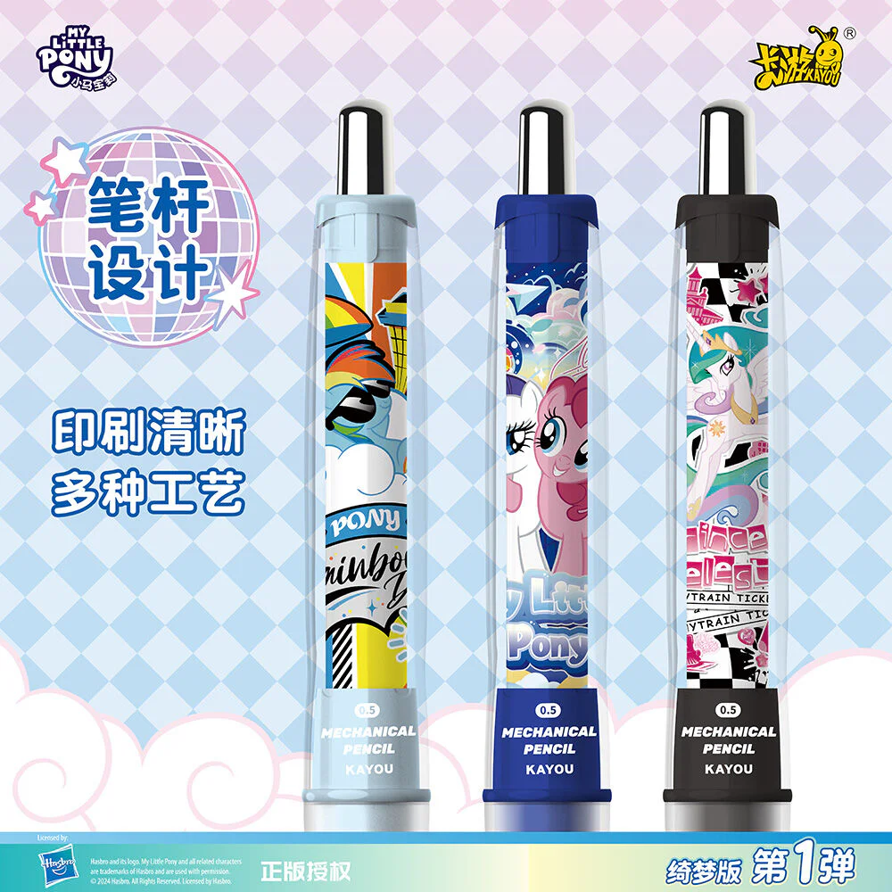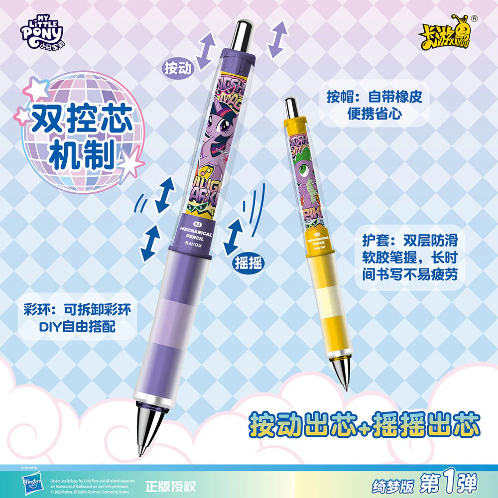 Kayou x My Little Pony Mechanical Pencil 1pc [Random] Genuine My Little Pony mechanical pencil random box, 0.5mm lead size, dual mechanism system, press to release lead + Shake to release lead (Dual Control Mechanism), the pencil body is printed with a clear pattern, bright colors, many patterns to collect.