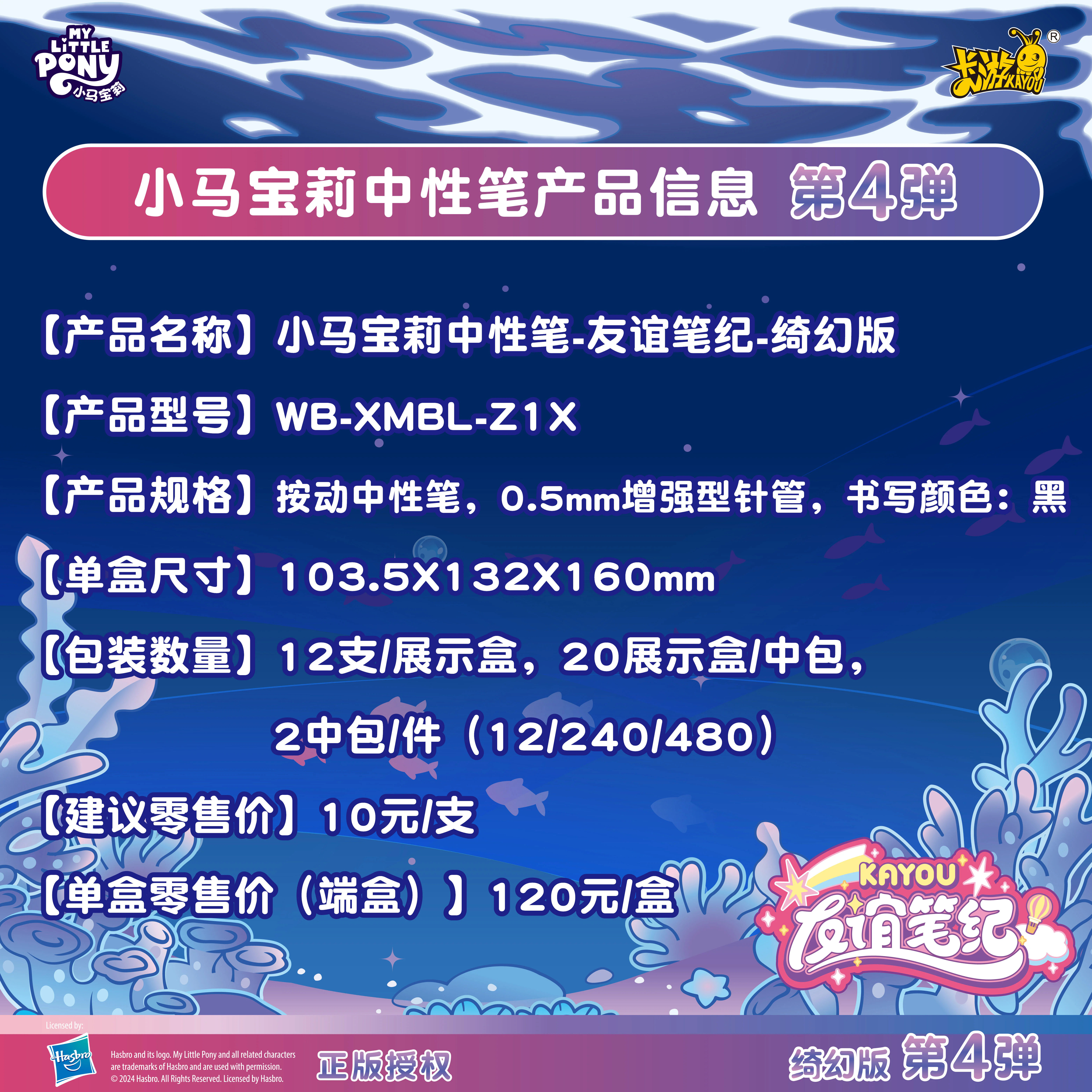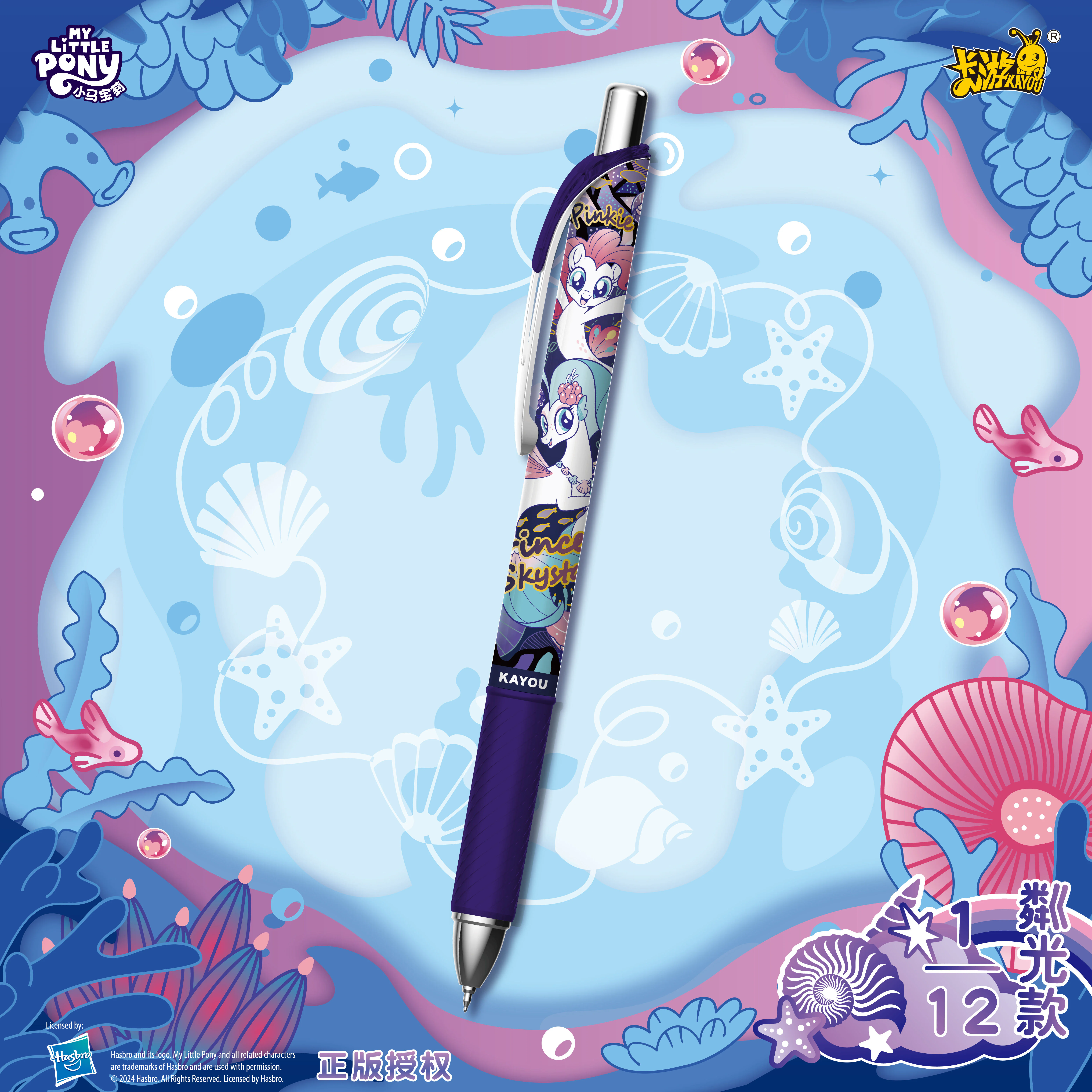 Kayou x My Little Pony Neutral Fantasy Pen 1pc [Random] Authentic My Little Pony licensed gel ballpoint pen random box comes in a fantasy underwater world concept. Comes with a 0.5 mm pen tip, smooth writing, no interruptions, convenient press design, easy to carry.