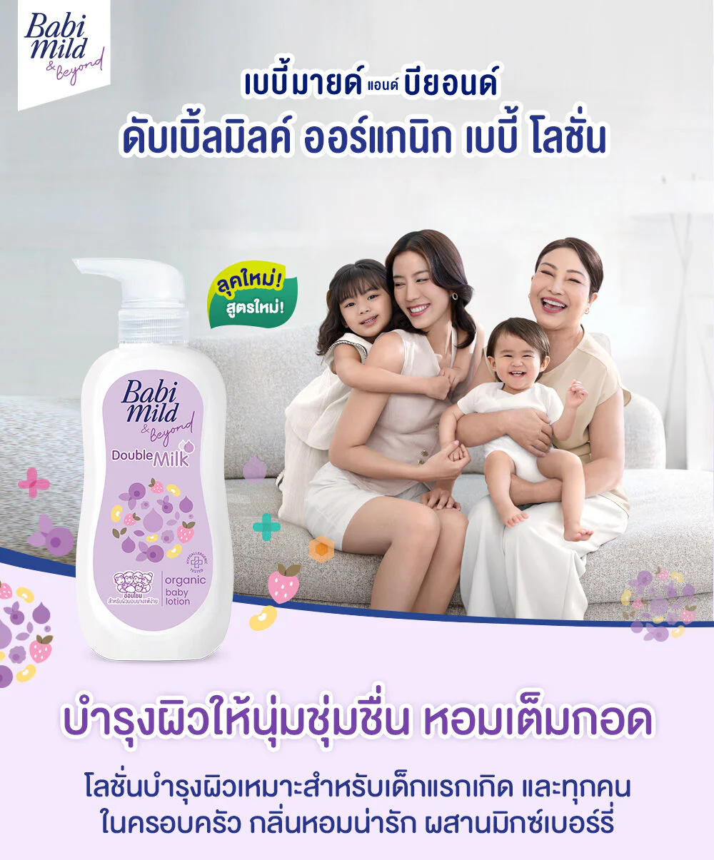 Babi Mild Double Milk Baby Lotion 350mlBody lotion contains protein from milk and soy milk, helps to make skin soft, smooth and moisturized, and protects skin from UV rays. Gentle enough to be used even on sensitive skin.