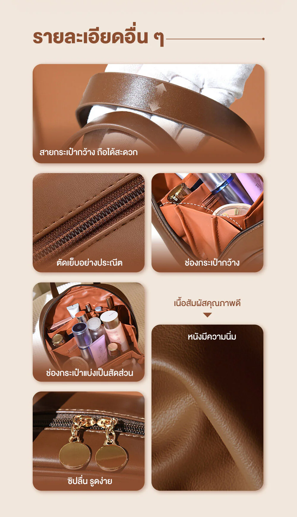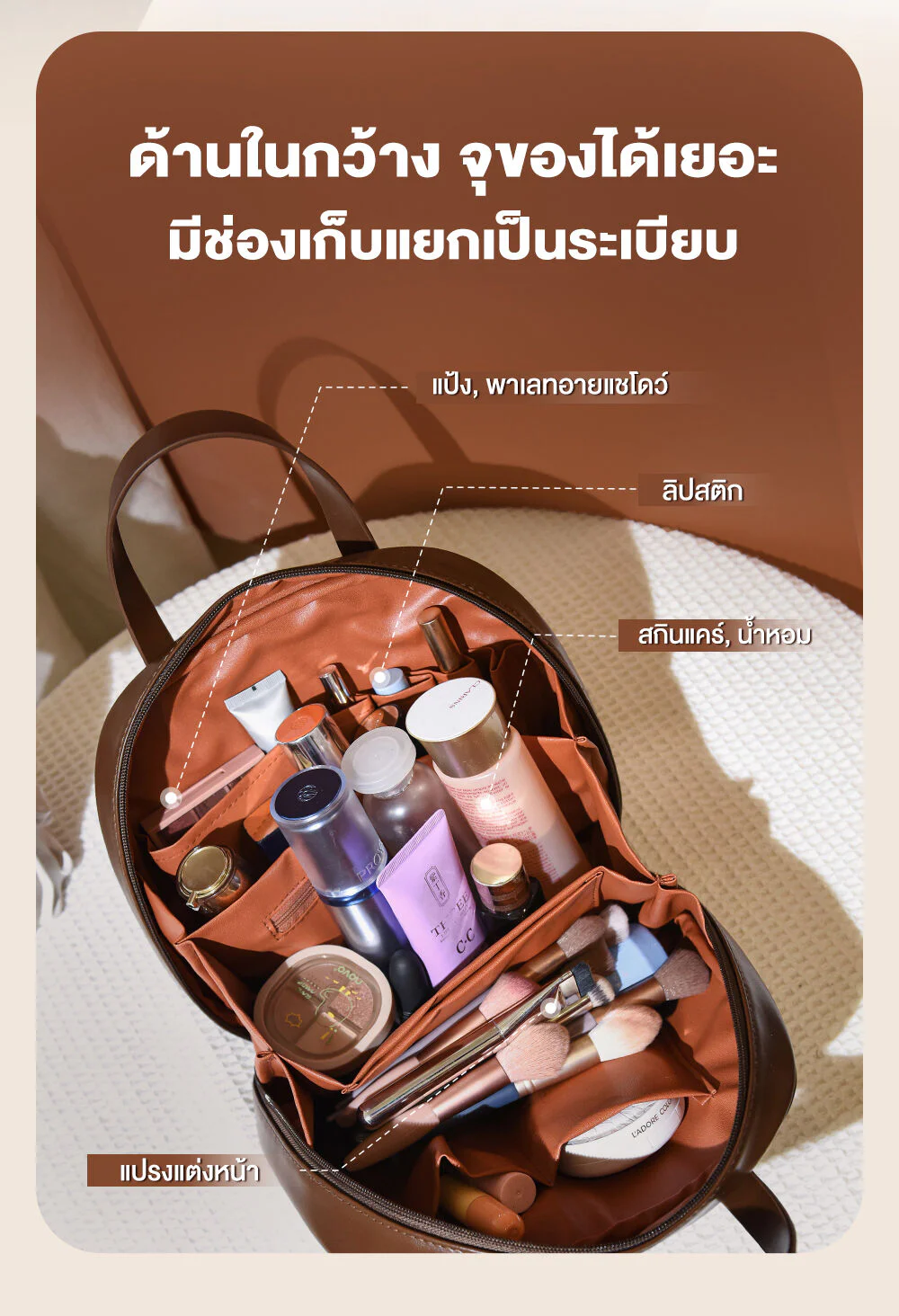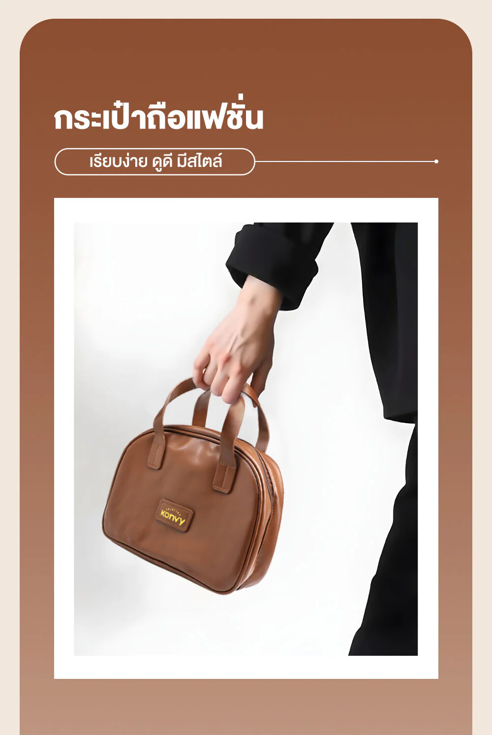 Konvy Portable Cosmetic Bag 1pc #Brown Brown cosmetic bag, vintage design, made of high-quality materials, meticulously sewn, with compartments for makeup brushes and other compartments to help organize and separate cosmetics neatly, with handles for holding and hanging on the arm, convenient to carry.