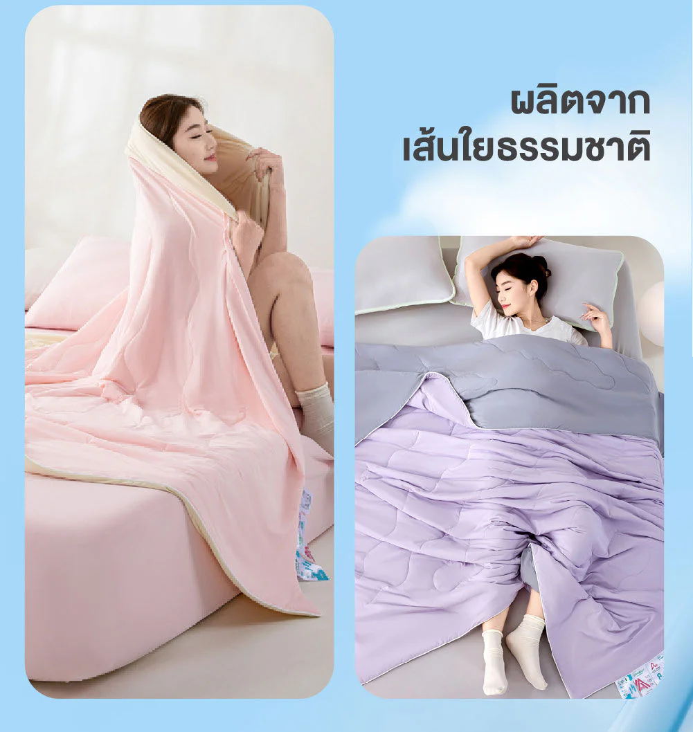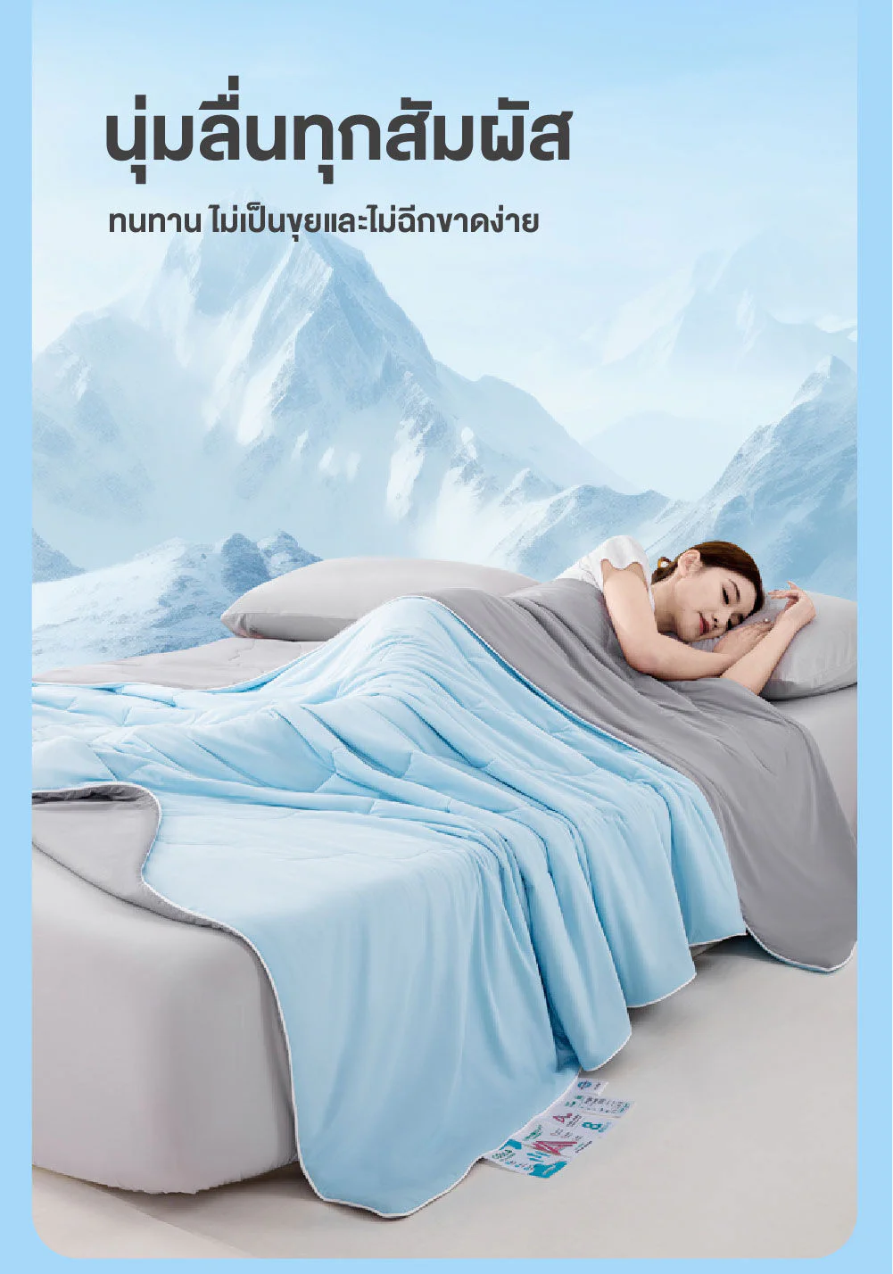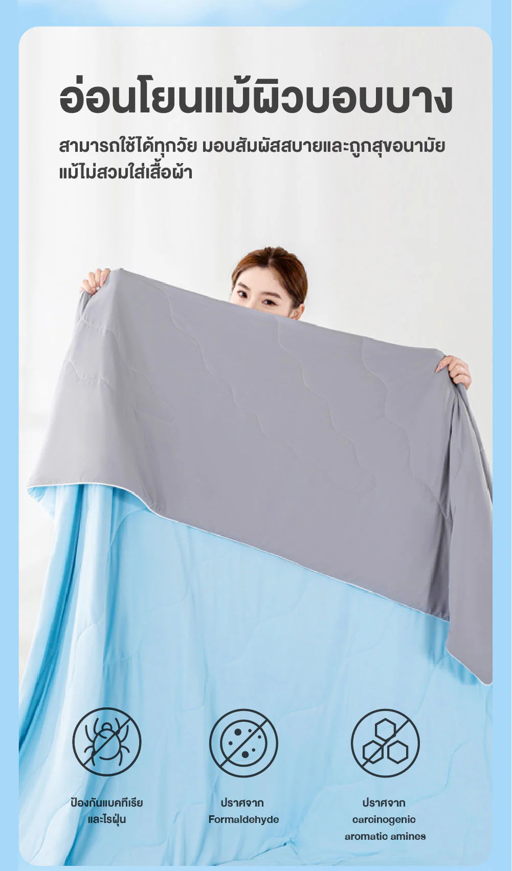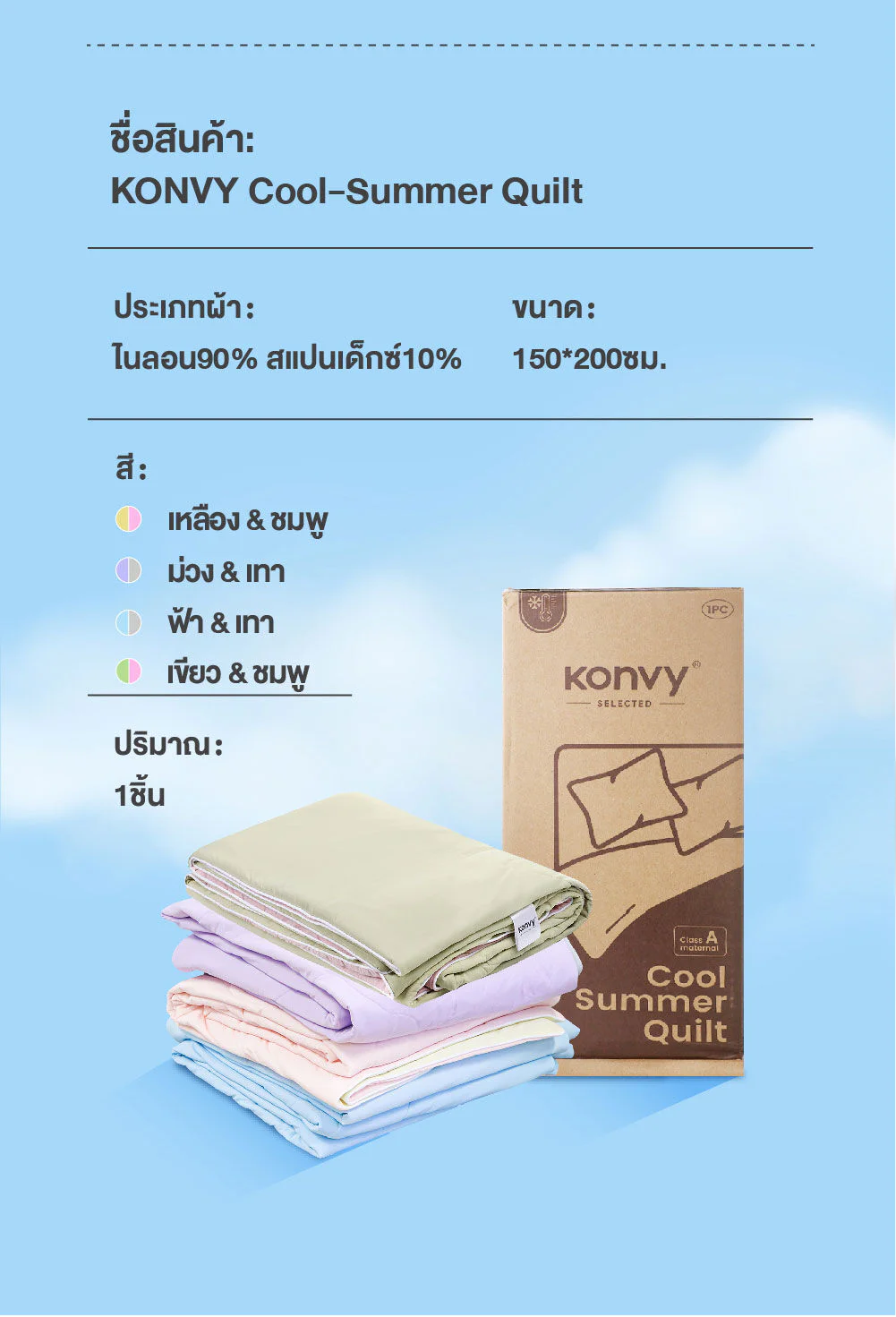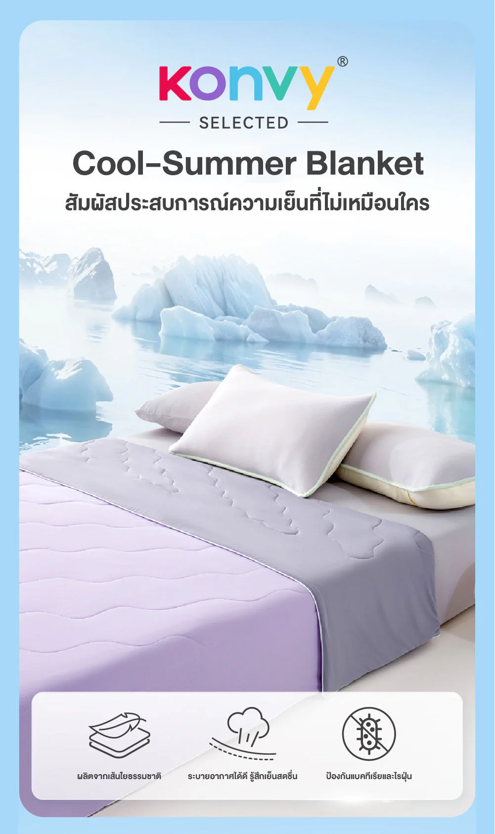 Konvy Cool-Summer Blanket 1pc #Blue & Gray Sleep comfortably with every touch with the cool blue-gray blanket.A new innovation from Konvy, designed specifically for summer, providing a cool, comfortable feel, not stuffy, and not hot. Made from natural fibers, breathable, cool, soft and gentle on the skin.