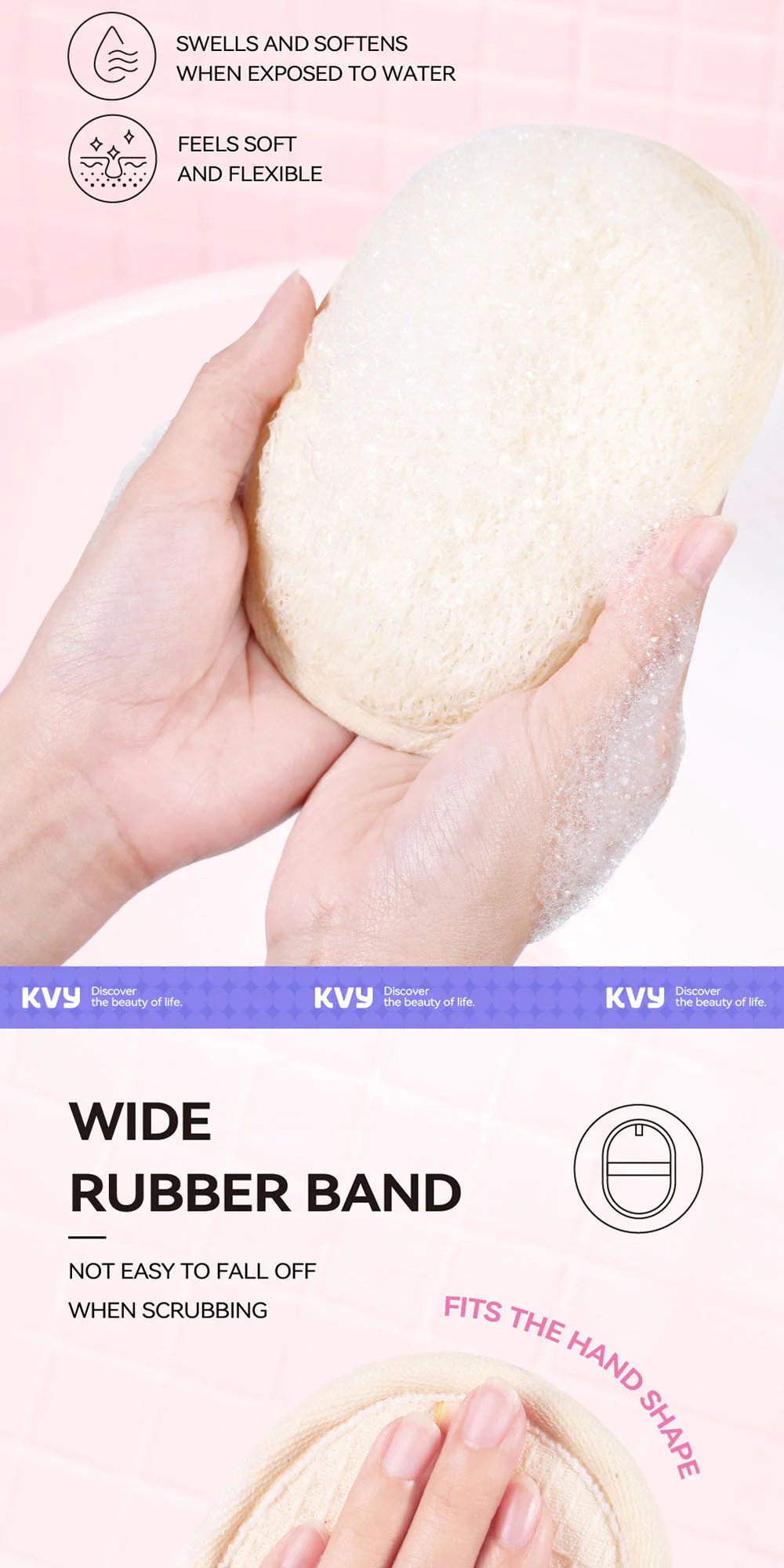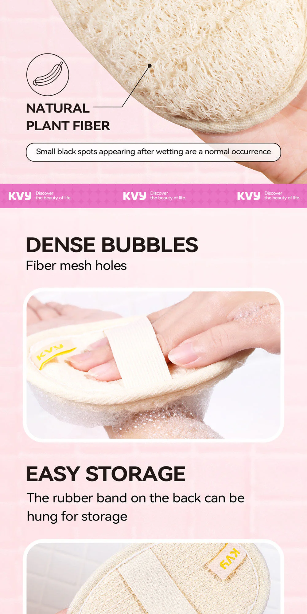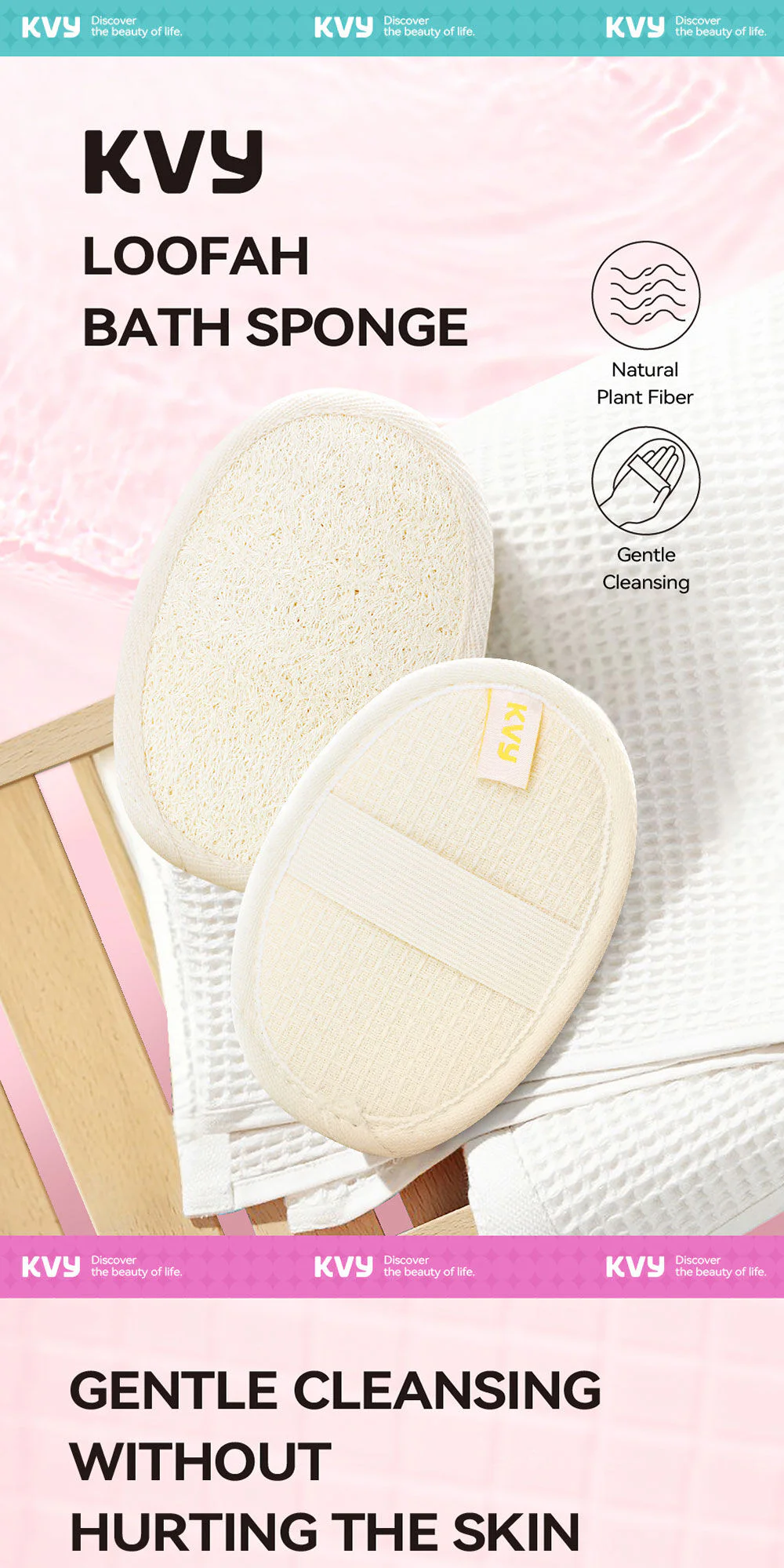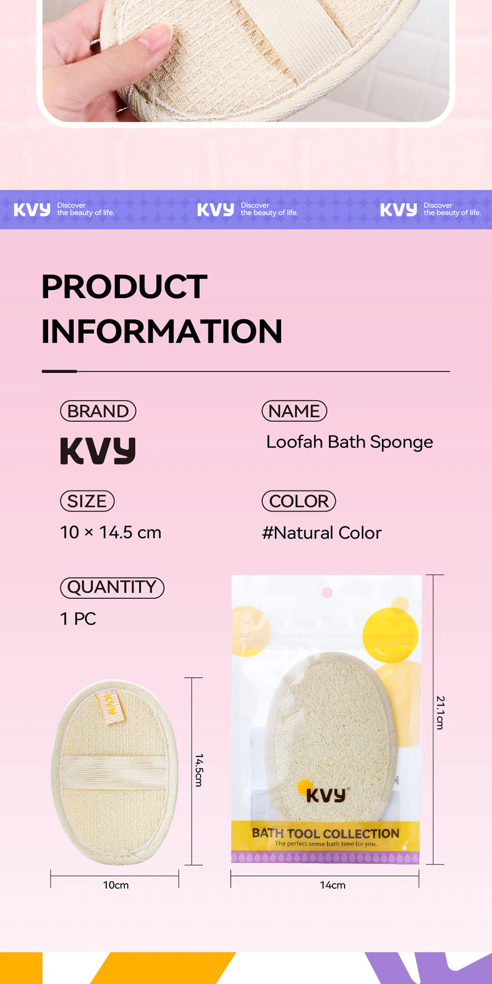 KVY Loofah Bath Sponge #Natural Color This natural loofah sponge is designed for exfoliating the skin. Made from fine natural fibers, it's gentle on the skin and effectively removes dead skin cells that cause ingrown hairs, leaving skin smooth and soft. It comes with a handle for a comfortable grip.
