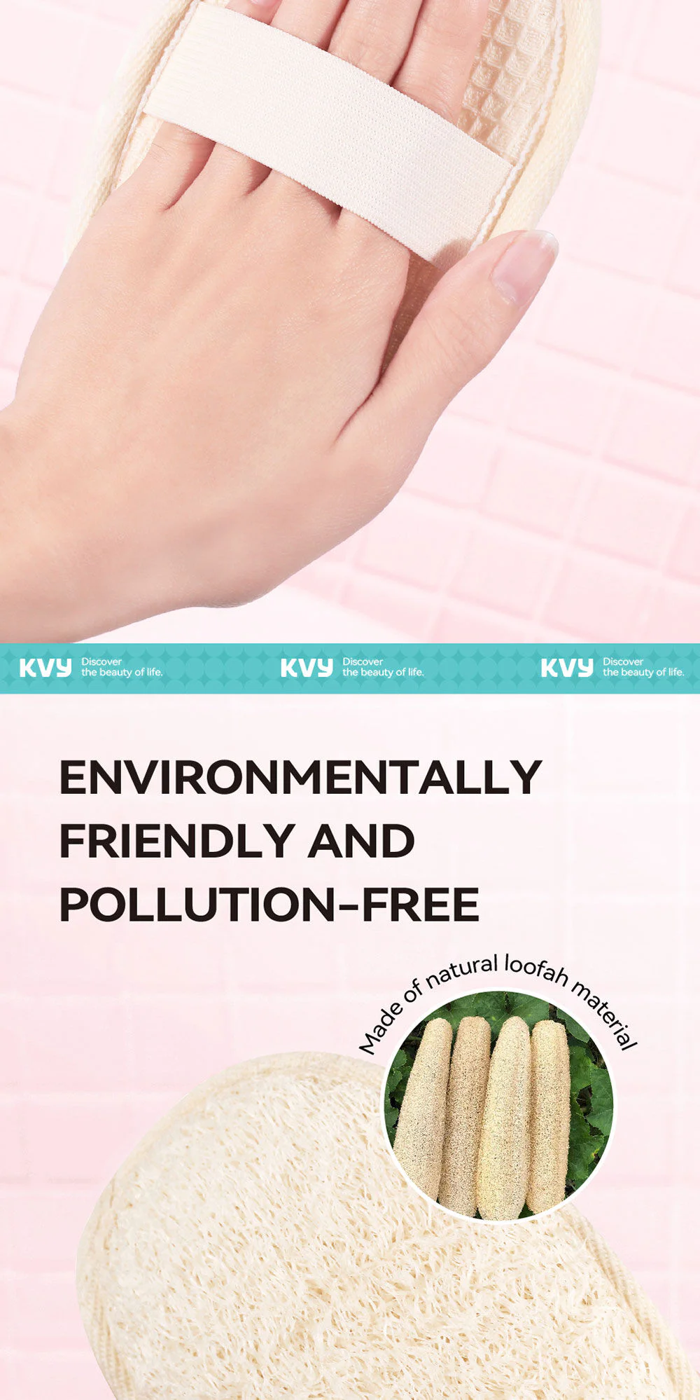 • Materials: Natural loofah fiber + Cotton waffle fabric