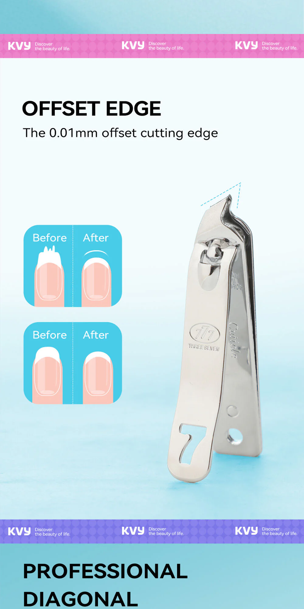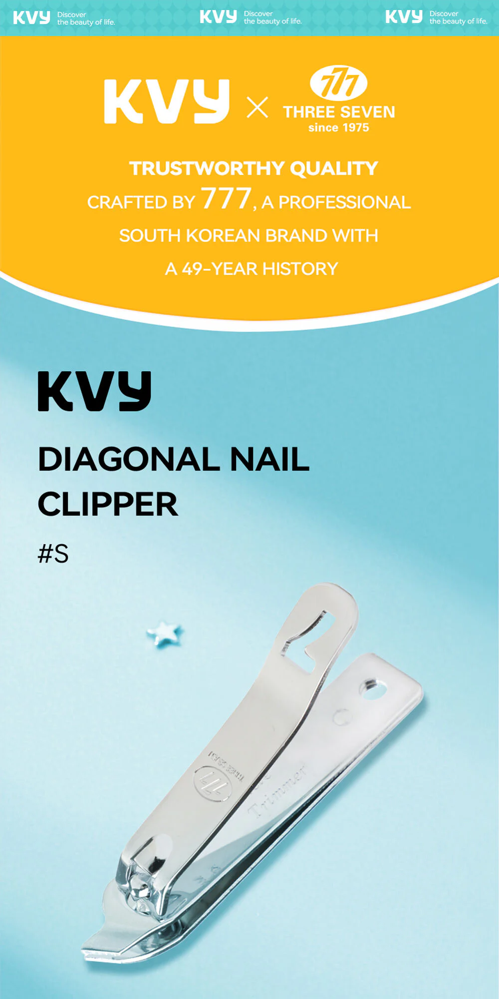 KVY X Three Seven 777 Diagonal Nail Clipper #SNail scissors, slanted shape Size S It stands out with its curved cutting angle that fits the shape of your fingers, making cutting easier.