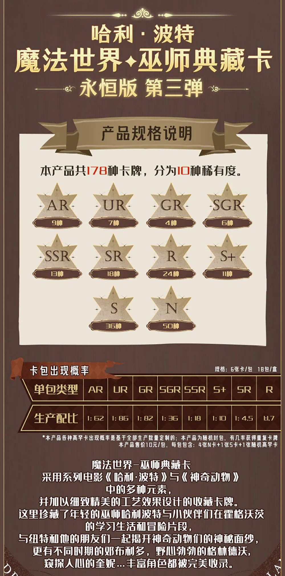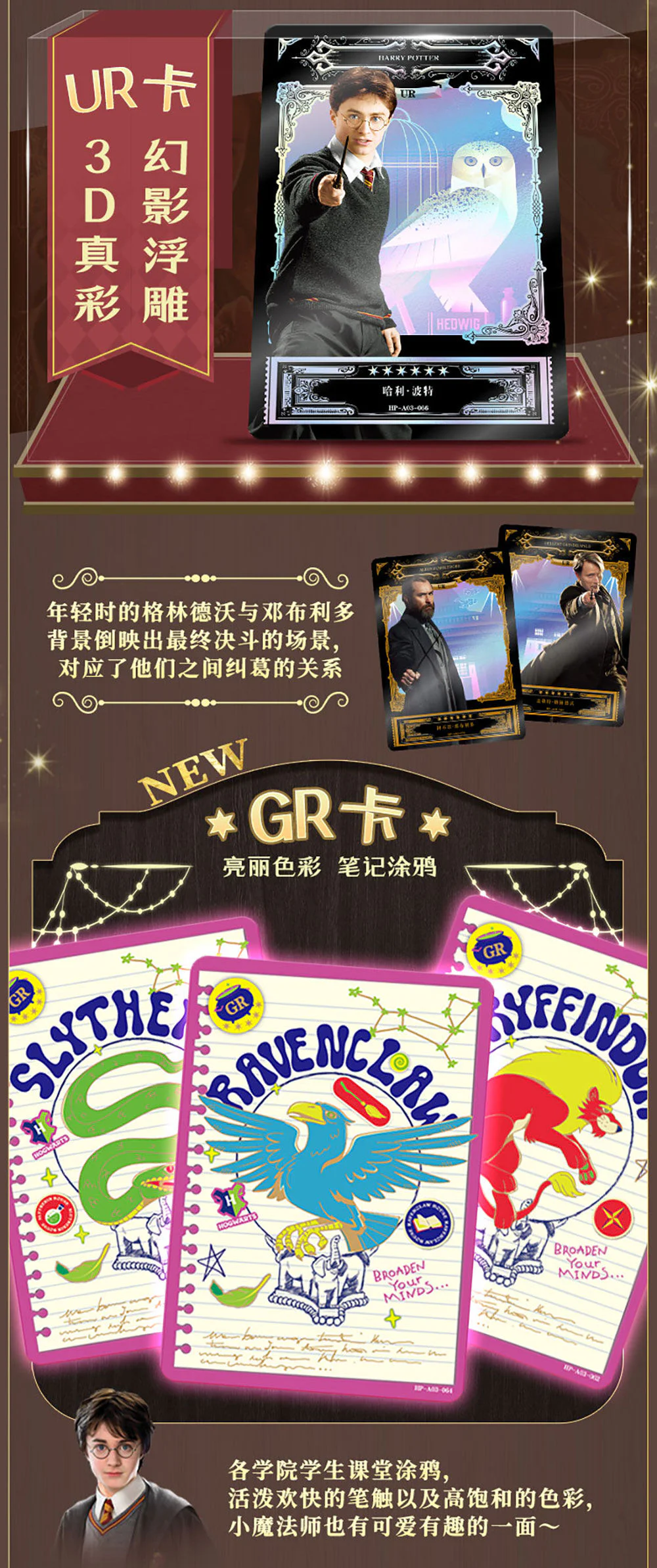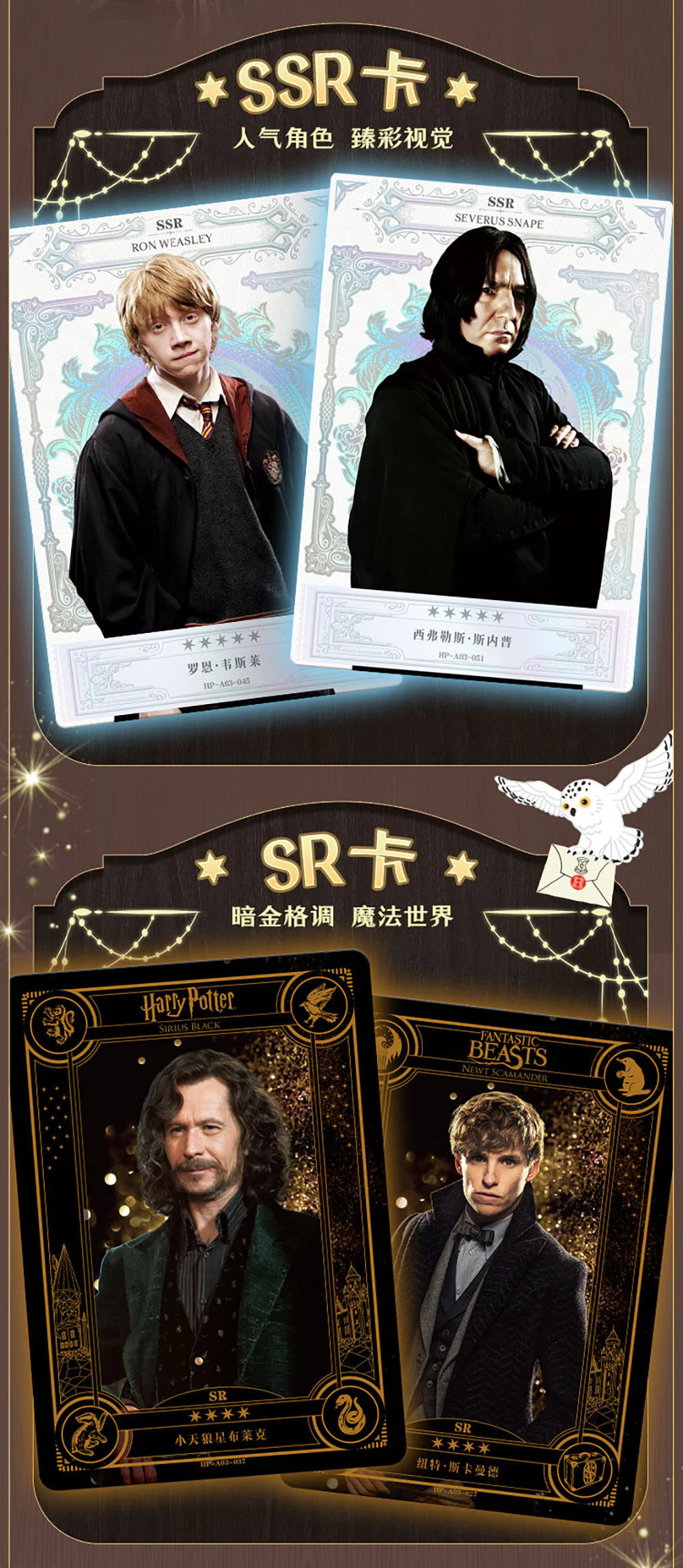 Kayou x Harry Potter Wizards Collection Card-Eternal Edition 1pc [Random] Authentic licensed card blind box, a special collaboration between Harry Potter x Fantastic Beasts x Kayou in the Wizards Collection Card-Eternal Edition Series 3, comes with a premium design that perfectly combines classic and fantasy. The cards are made from high-quality materials and printed with multi-layer techniques. There are AR cards, glow-in-the-dark cards, special cards SGR, SSR+, SR+, R+, and limited cards that are hard to find. Perfect for collectors and Harry Potter fans.
