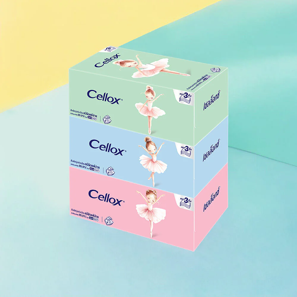 Cellox Facial Trendy Box [80 Sheets x 3pcs] Facial tissue, soft and smooth to the touch, 3 layers thick, combined with Shea Butter and Aloe Vera extracts with GermClear technology +, helps reduce the accumulation of bacteria, gentle even for sensitive skin, comes with a sweet and gentle colored box and a very cute pattern.