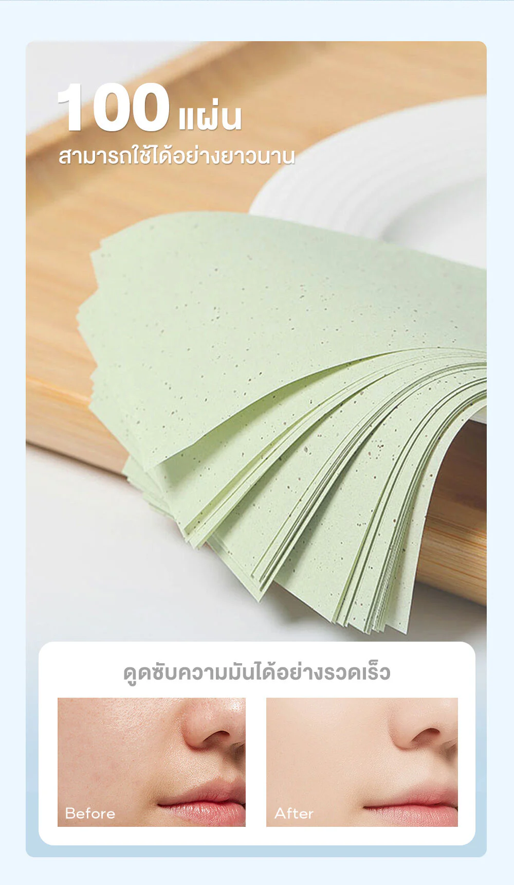 • High efficiency, absorbs oil quickly, helps absorb excess oil on the face quickly, making the face look clean and fresh again.