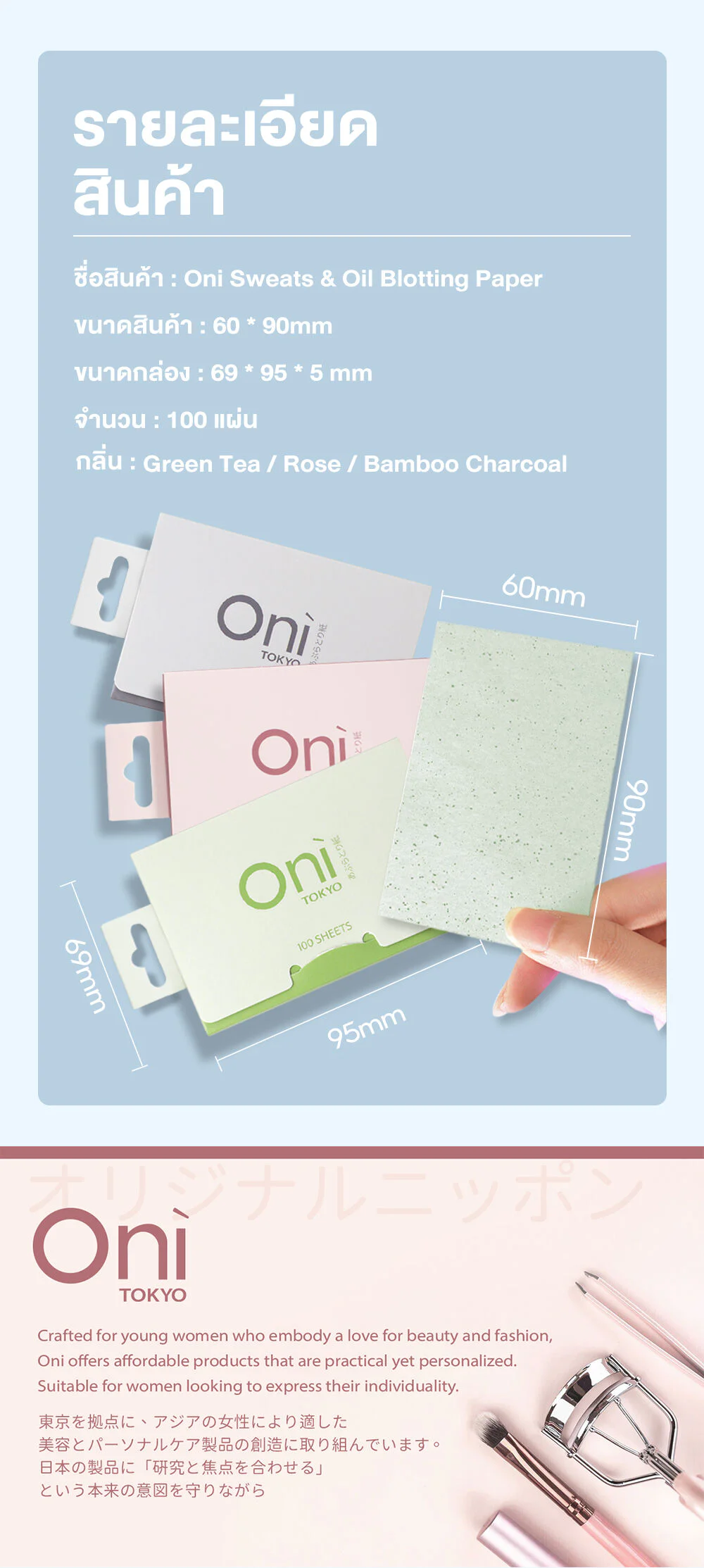 Oni Sweats & Oil Blotting Paper 100 Sheets #RoseSay goodbye to oily skin throughout the day with these 100-sheet rose oil blotting paper. These extra-soft sheets quickly absorb excess oil and sweat without disturbing your makeup or leaving your skin feeling dry and tight. They're gentle on the skin, won't irritate it, and come in a cute, portable package.