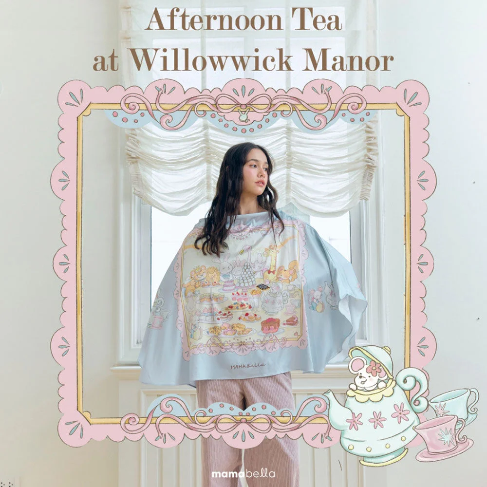 Mamabella Afternoon Tea At Willowwick Manor Breastfeeding Cover 1pc Nursing cover for mothers, made from Spanish silk that is soft, smooth, and cool to the touch. Featuring a unique pattern unique to Mamabella, the Afternoon Tea at Willowwick Manor pattern features a pattern of afternoon tea, reminiscent of the warm atmosphere in the garden of an English-style mansion.