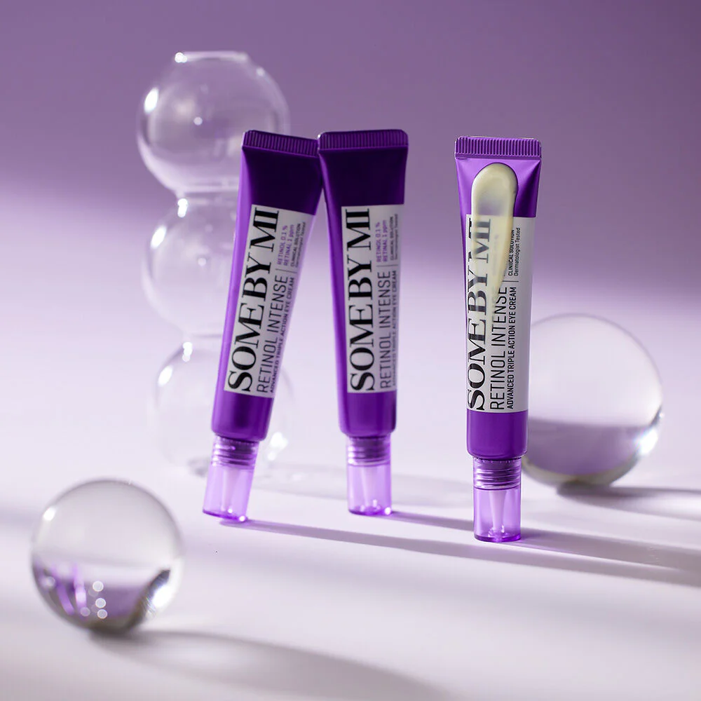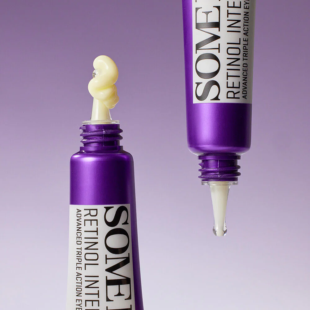 SOME BY MI Retinol Intense Advanced Triple Action Eye Cream 30ml Retinol eye cream, gentle formula, non-sticky texture, combines Retinol 0.1% and Glutathione to reduce wrinkles and dark circles around the eyes with plant collagen and peptides to soothe and moisturize the skin, giving the skin around the eyes a smoother, brighter look.
