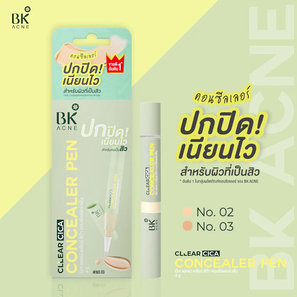 BK Clear Cica Concealer Pen 4g #03 Pen-type concealer for acne-prone skin. The liquid texture is smooth and soft, easy to spread, and blends into the skin. Excellent coverage, long-lasting, does not settle into lines, does not clump, does not flake or stain, and does not clog pores. It does not cause more acne. It comes with a soft silicone pen tip that does not hurt the skin.