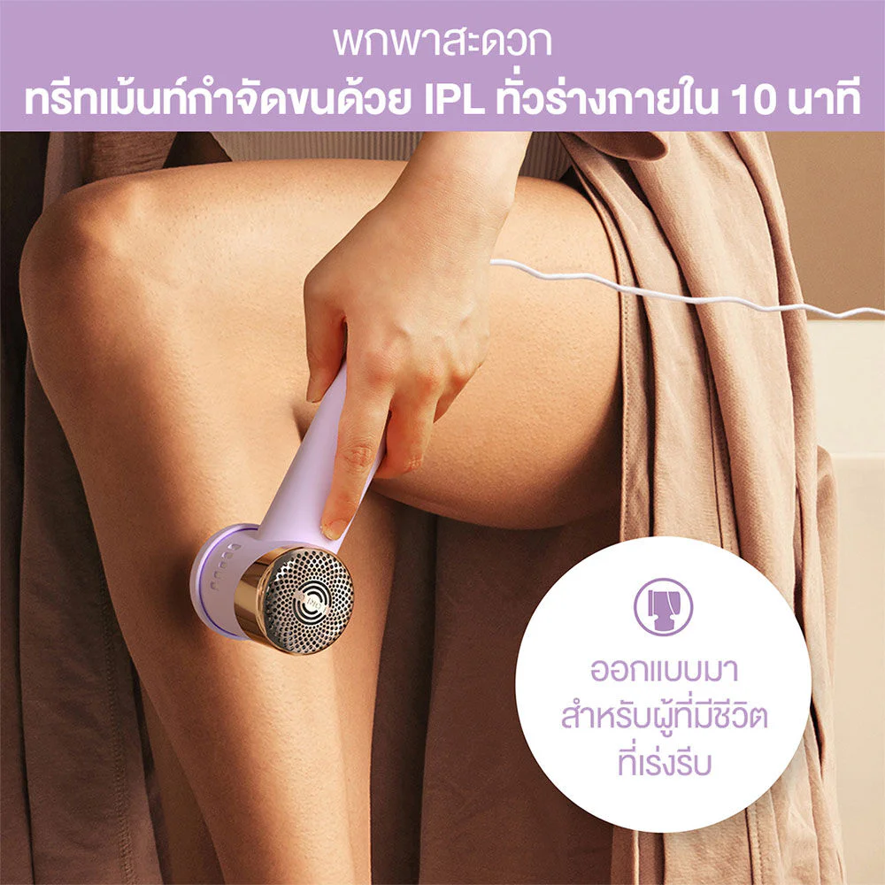 • It has IPL flashes with a maximum speed of 0.5 seconds and can emit up to 120 flashes per minute, reducing hair regrowth.