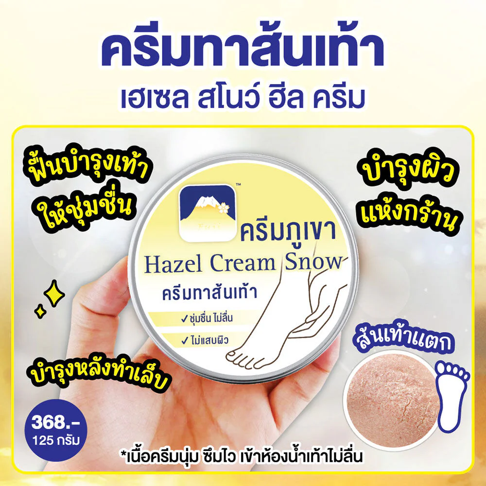 Fuji Cream Hazel Snow Heel Cream 125g Heel cream, butter texture, nourishing formula with concentrated moisturizer, fast absorption, not sticky, comes with nourishing substances from hazelnut oil, snow lotus, lavender oil, shea butter, Niacinamide and ceramide, helps nourish and reduce dry touch points, retains moisture for the skin for a long time.