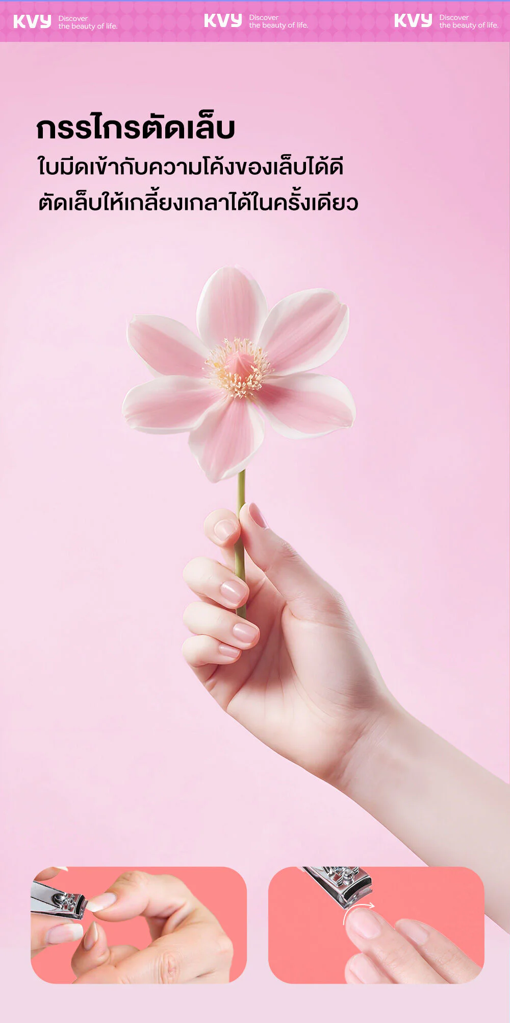 KVY Stainless Steel Manicure Set 4pcs Set of 4 nail clippers, made of high quality stainless steel, comes with a pink leather storage case, compact size, easy to carry.