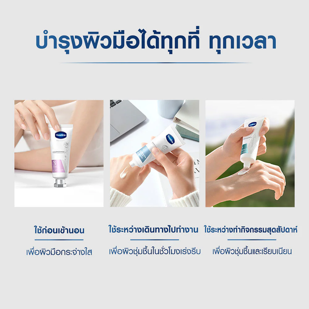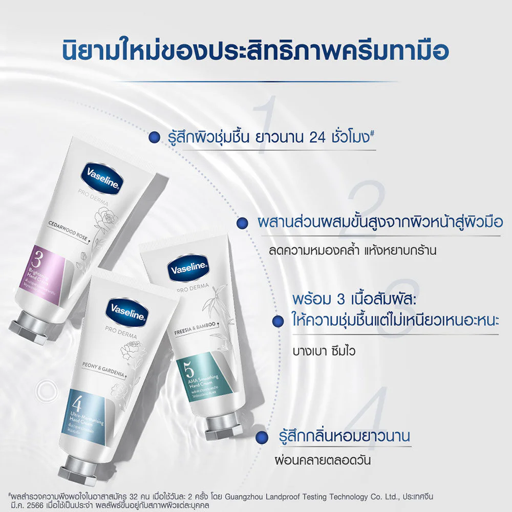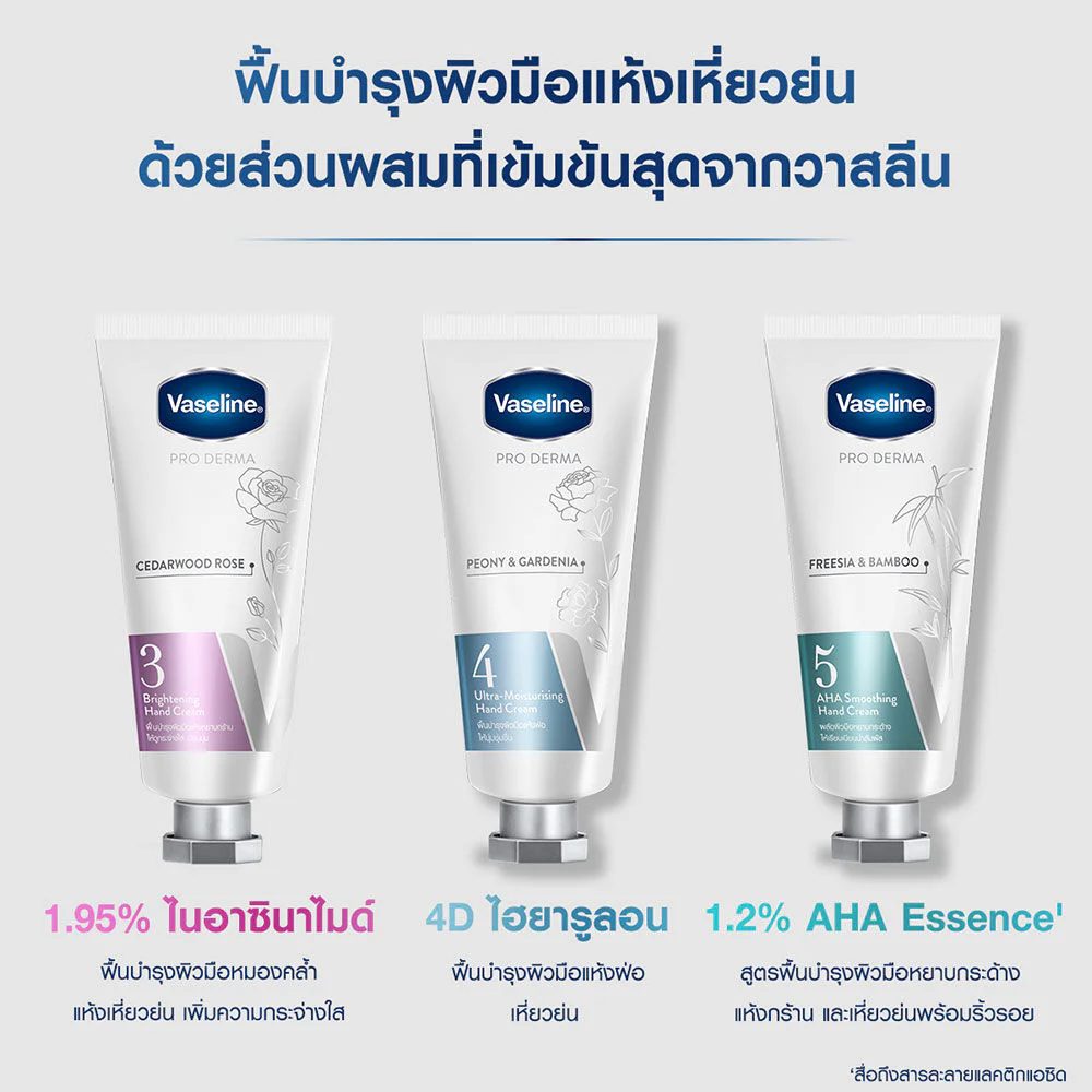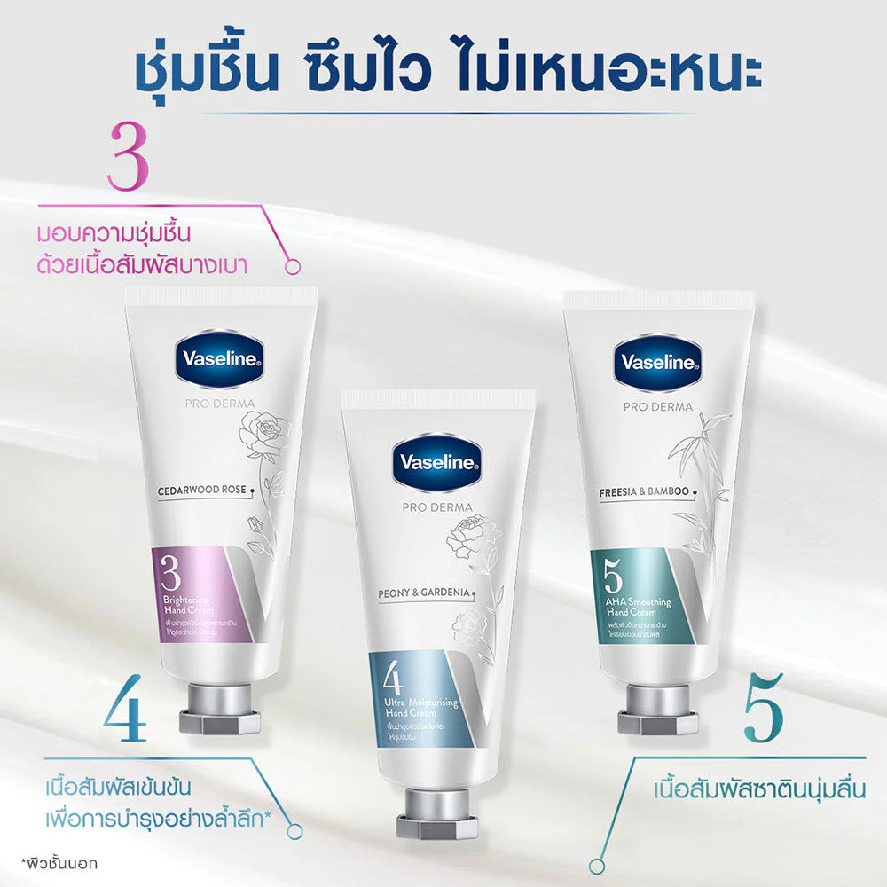 Vaseline Pro Derma Cedarwood Rose Brightening Hand Cream 37ml Hand lotion, formula for restoring dry-dull skin, woody floral scent, light cream texture, fast absorption, not sticky, with Moisture Magnet technology, helps retain moisture for a long time, combined with Saccharide Isomerate Complex and Niacinamide 1.95 %, helps restore dry-dull hand skin to look brighter, revealing smooth, soft, radiant hands.