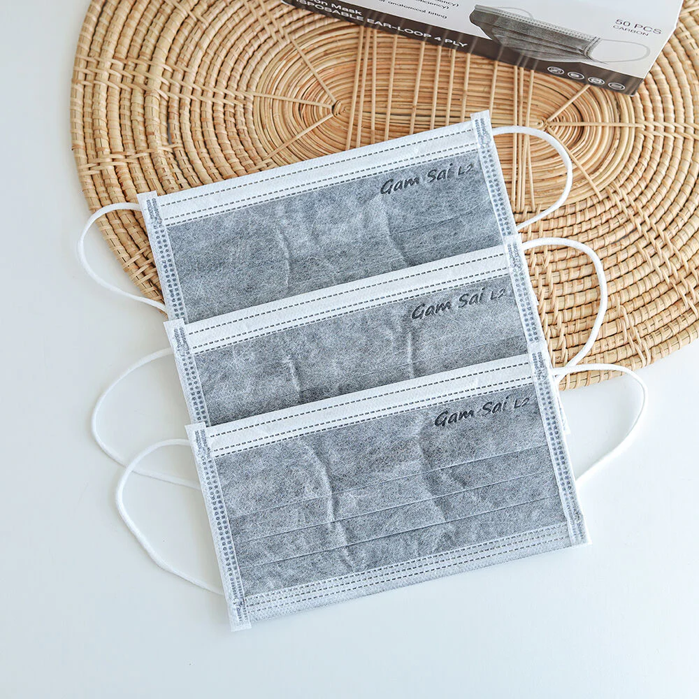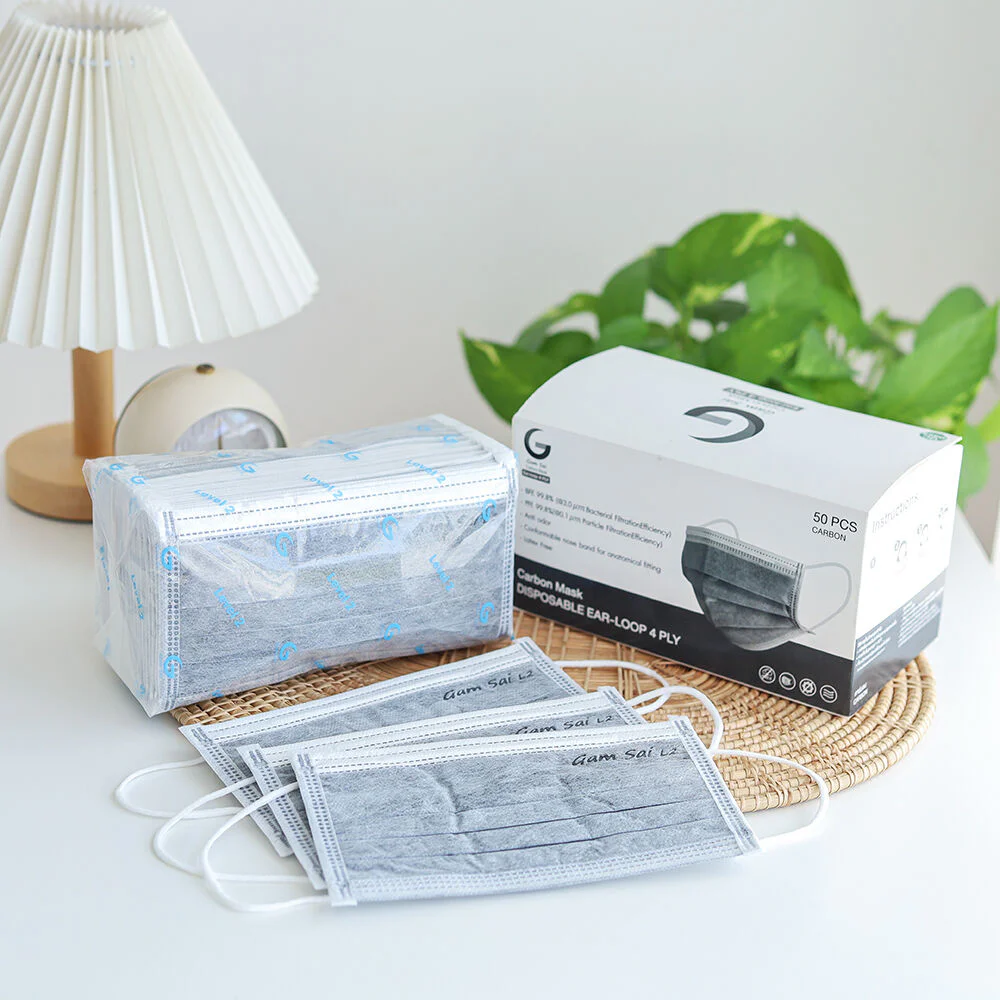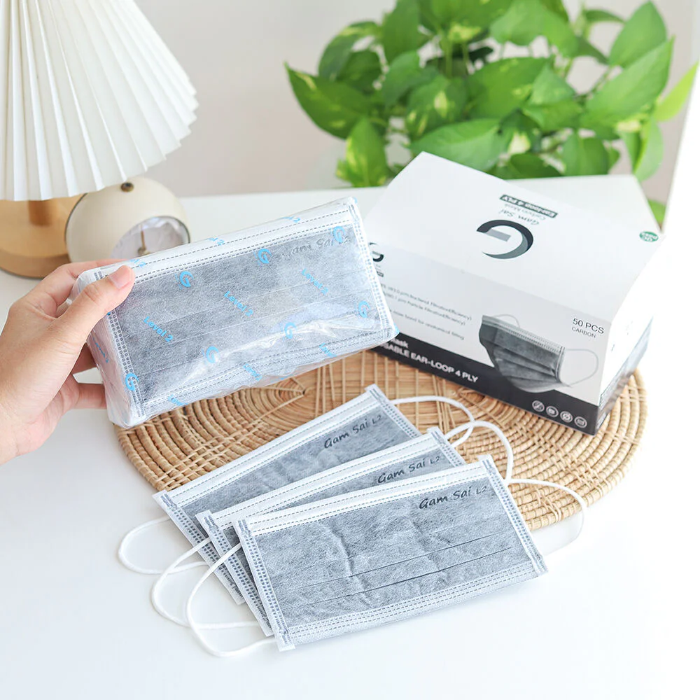 Gamsai Carbon Mask 4 Layers For Adult 50pcs Carbon face mask for adults, 4-layer filter, helps protect against dust and odor, comfortable to wear, easy to breathe, does not irritate the skin.
