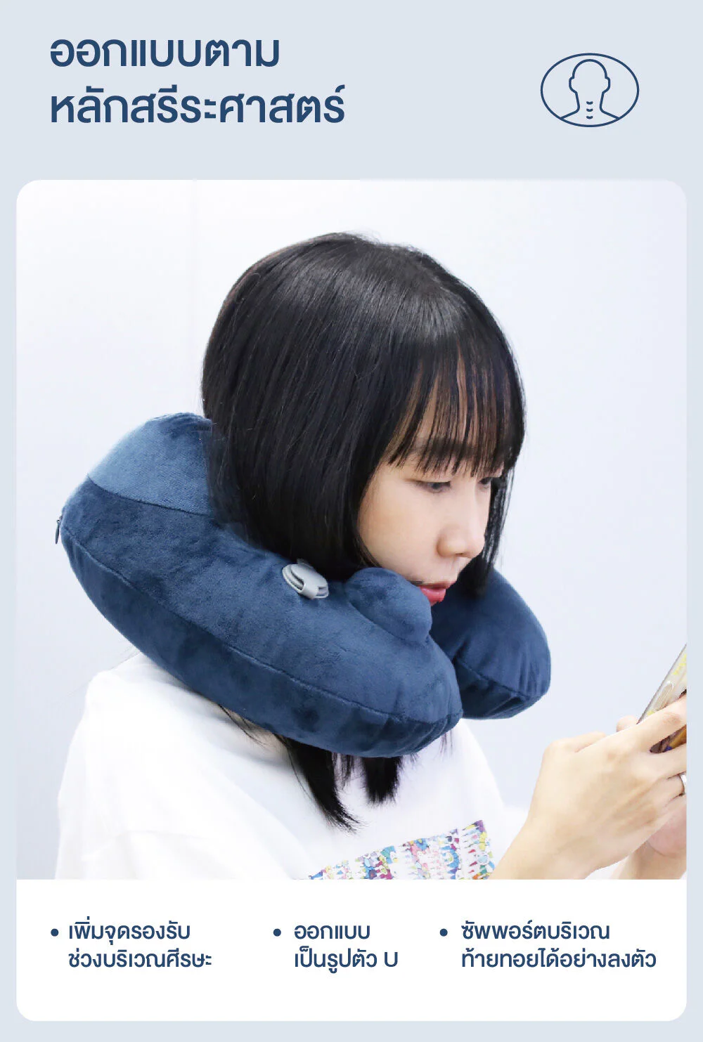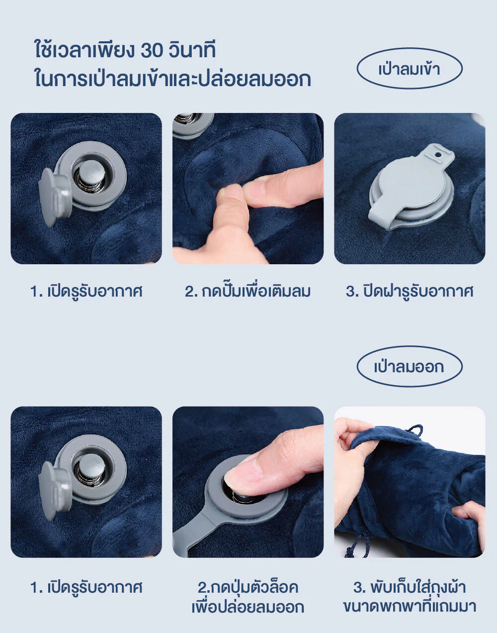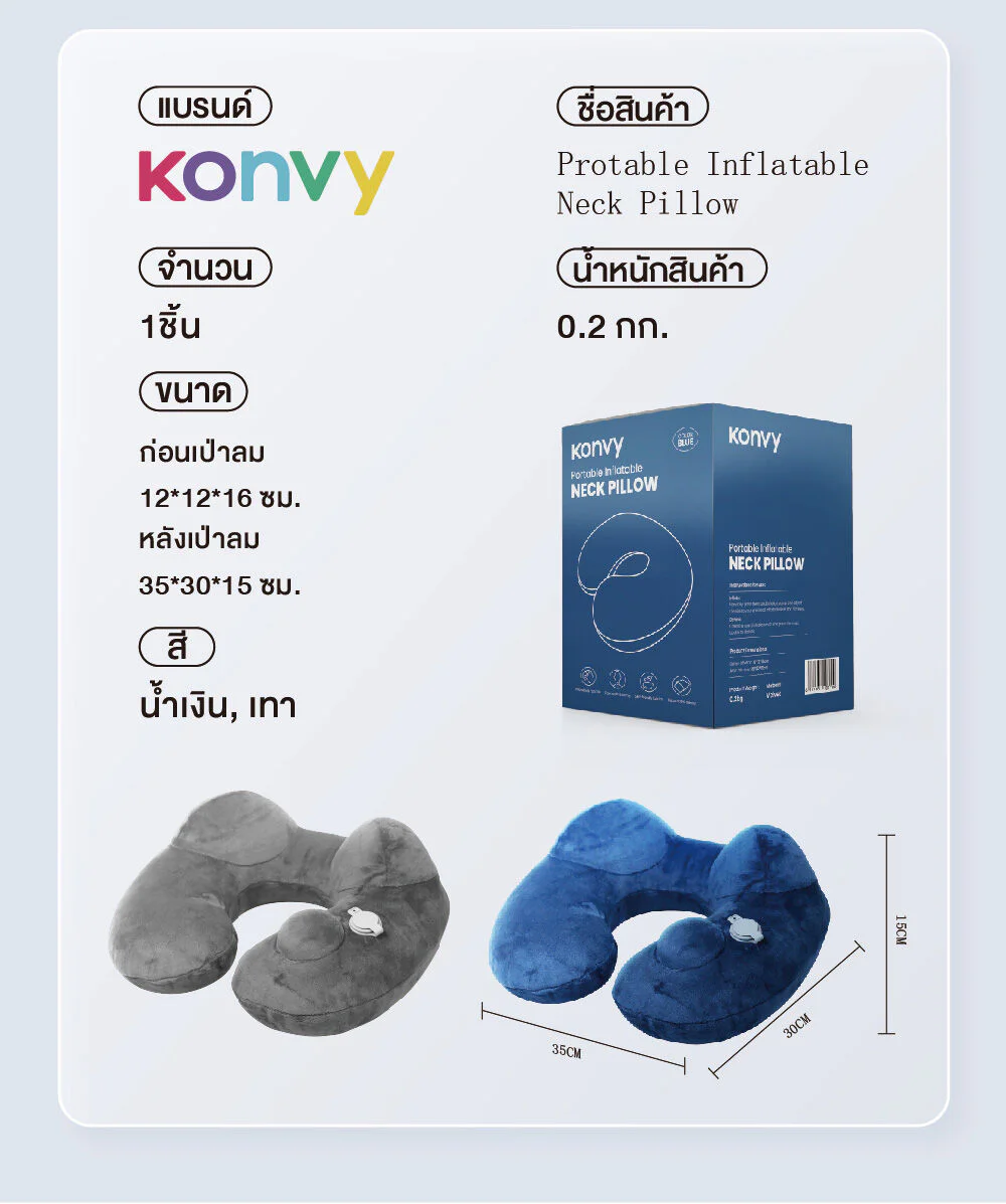 Konvy Portable Inflatable Neck Pillow 1pc #GrayInflatable neck pillow, gray color, good body support, adjustable according to usage, provides a soft velvet touch, does not irritate the skin, comes with a drawstring bag for carrying.