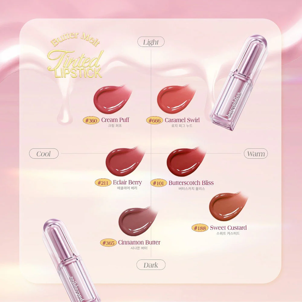 barenbliss Butter Melt Tinted Lipstick 2.7g #101 Butterscotch Bliss A smooth, soft lip balm that feels light and comfortable on the lips. The color is clear, easy to spread, not sticky, waterproof, and long-lasting. With 6X PhytoFusion Butter Nourish ingredients, it helps nourish the lips to be smooth, soft, and moisturized. It also has 3D Spotlight Shine technology that helps increase the ultimate shine, adding dimension to the lips to look full and captivate everyone.