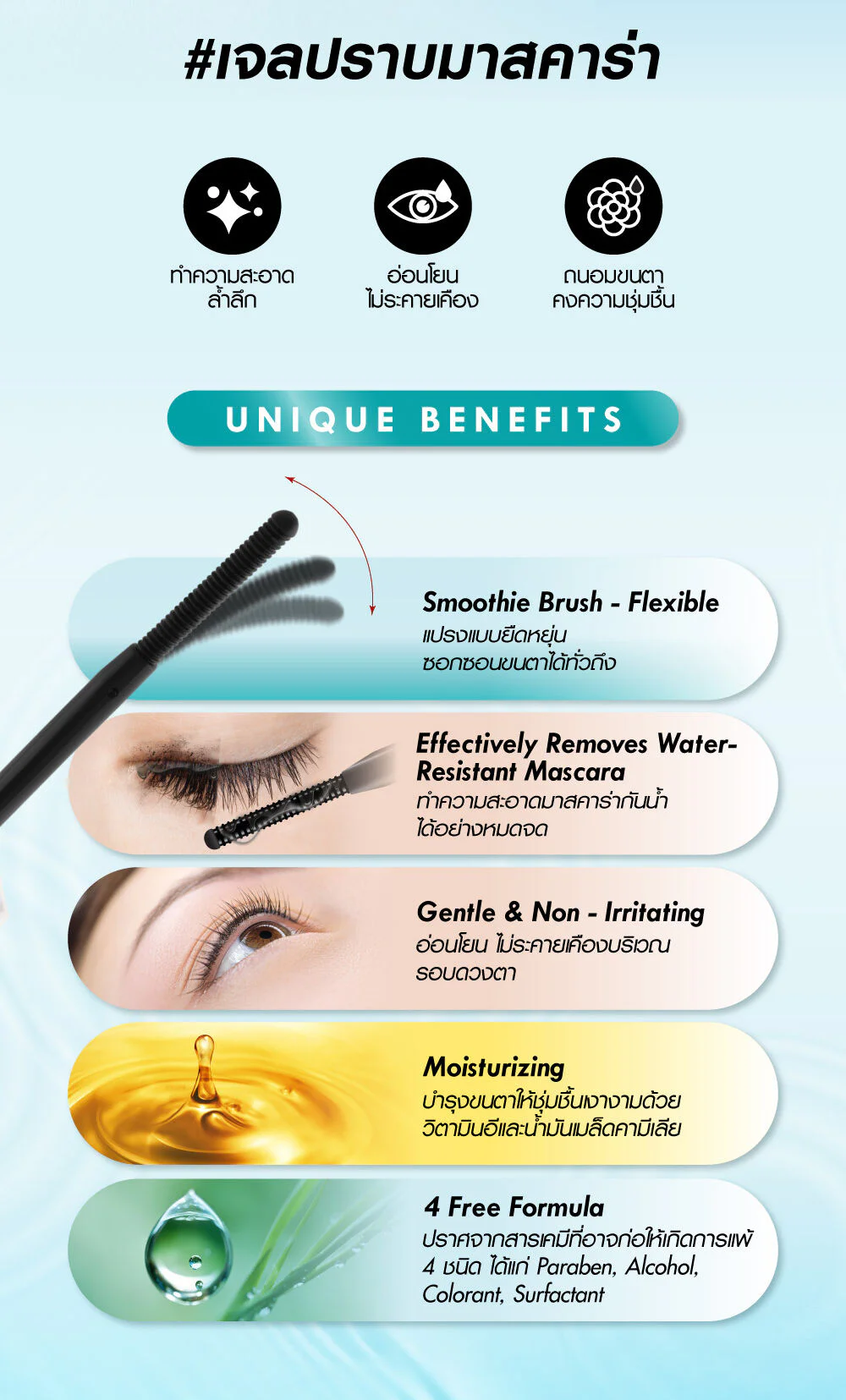Browit Clean & Care Mascara Remover 10g Mascara remover This lightweight, clear gel in a convenient stick with an applicator brush easily removes mascara from root to tip, even waterproof mascara, without the need for rubbing. The brush reaches every lash for thorough cleansing, minimizing irritation and moisturizing lashes with Vitamin E and camellia seed oil.