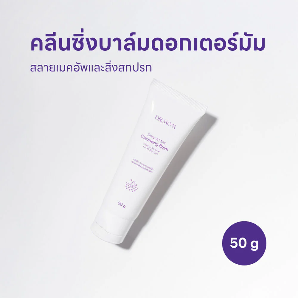DR.MOM Cleansing Balm 50g A soft cleansing balm that combines Encapsulate Centella and Ceramide to gently cleanse dirt and waterproof makeup without drying out the skin. With Organic Tea Tree Oil, Bakuchiol Rovisome, Ligustrum Lucidum and Majus Flower Extract, it helps soothe acne-prone skin, revealing clean, smooth and healthy skin.