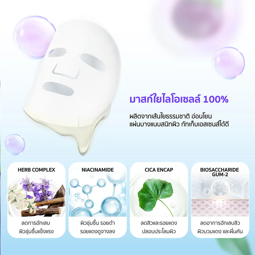 ES Acne Soothing Booster Mask 23ml Acne-reducing mask sheet, soothing skin, deep nourishment with natural concentrated extracts, combined with Nano-encapsulation technology, helps reduce redness and restores skin to be strong in every dimension.