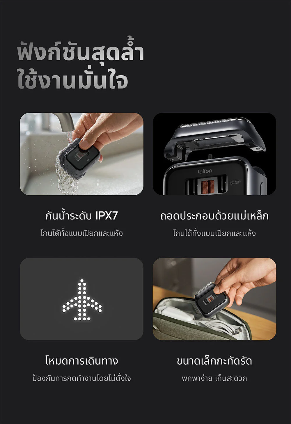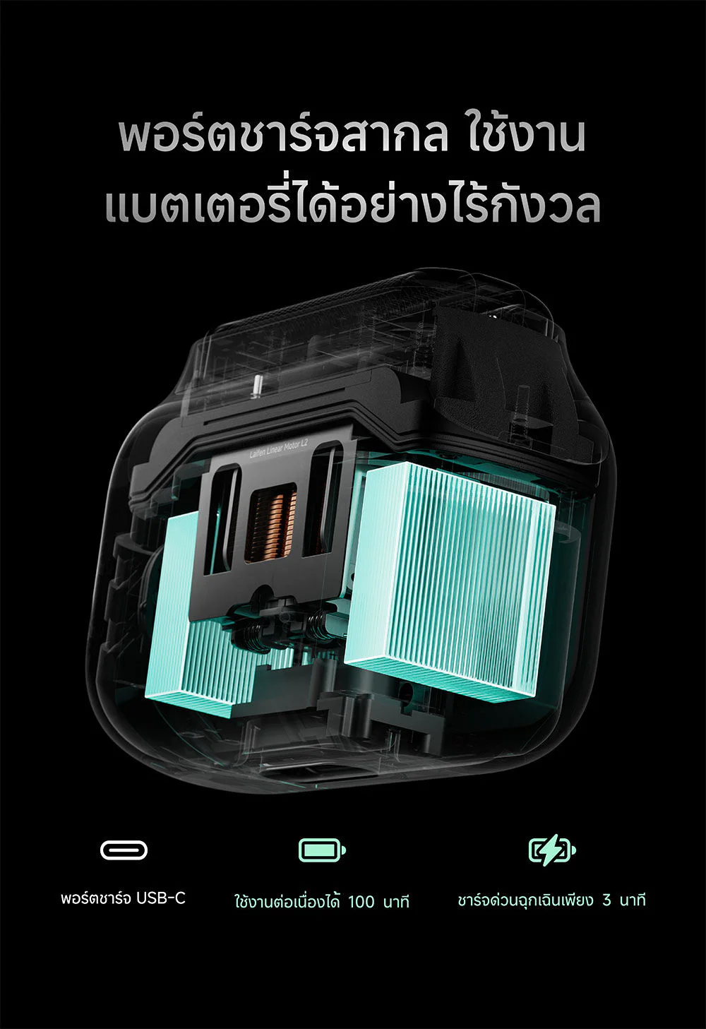 • Laifen's self-developed L2 dual linear motors, motor speed 24,000 times per minute (2 times stronger than single motor)