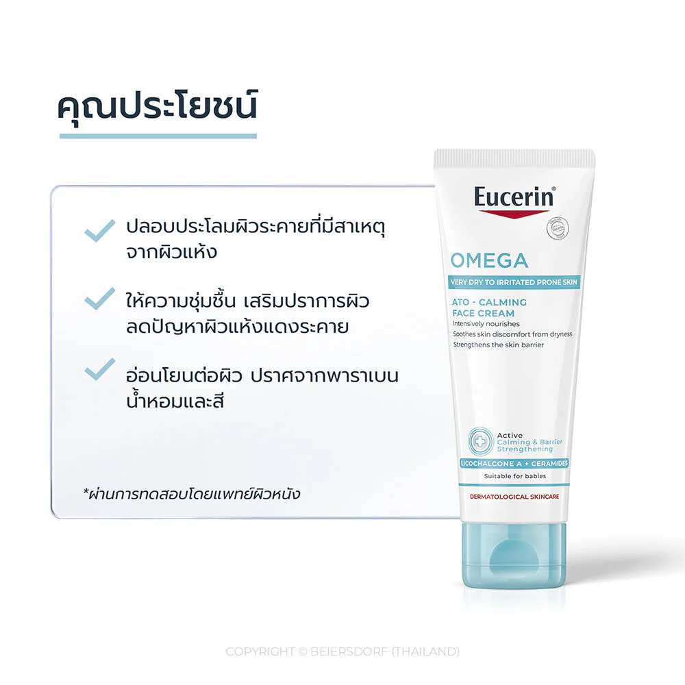 Eucerin Omega Active-Calming Face Cream 50ml Body balm for those with dry, red, itchy skin. Light texture helps reduce dry skin, redness, and irritation caused by dry skin. Helps restore moisture and restore the skin's protective layer to be healthier.