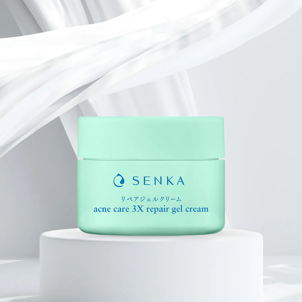 Senka Acne Care 3X Repair Gel Cream 50g Acne-prone skin care gel cream with a light texture with 3X Repair Active innovation from Salicylic Acid, Tranexamic Acid and Hyaluronic Acid that gently restores acne-prone skin, reduces dark spots along with extracts from White Cocoons and Cica Extract that help soothe the skin, moisturize it and create a strong skin protection barrier, giving you smooth, hydrated and healthy skin.