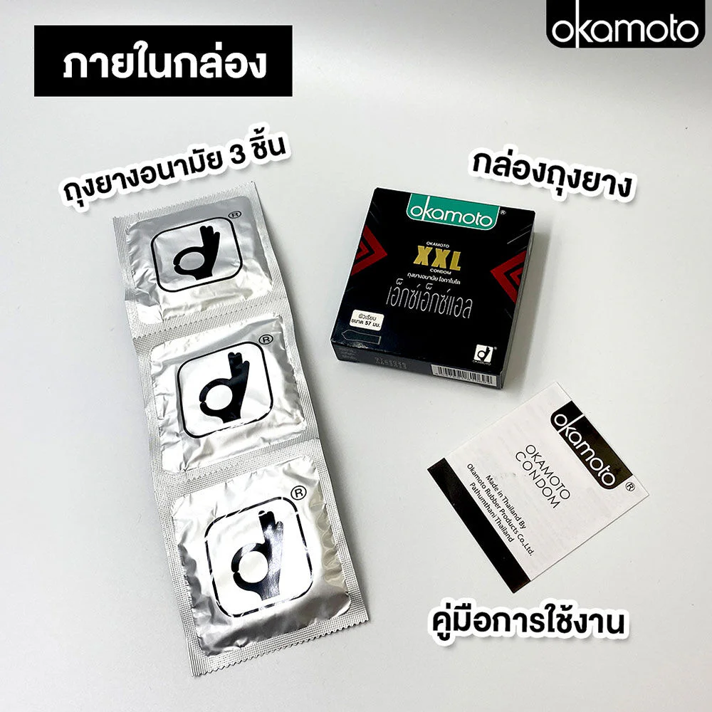 Okamoto XXL Condom 57mm [3pcs] Extra large 57 mm smooth condom made from natural rubber. Cylindrical design to make your partner excited and fascinated every time before the activity.