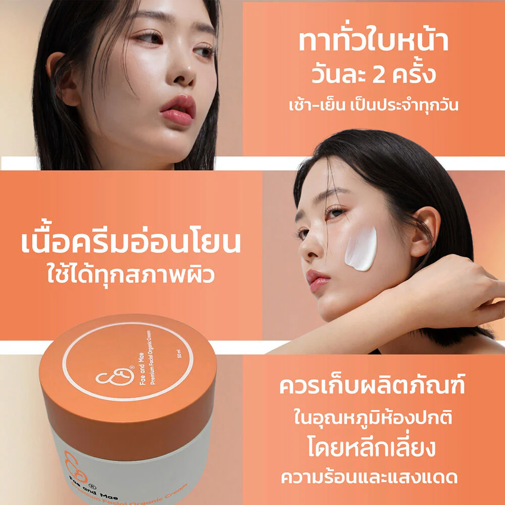 Fae and Mae Premium Facial Organic Cream 50g Facial cream enriched with premium organic extracts. The cream is quickly absorbed, does not cause clogging, reduces redness, dark spots and skin irritation, and tightens pores. Provides deep nourishment, leaving skin smooth, moisturized and looking full of water.