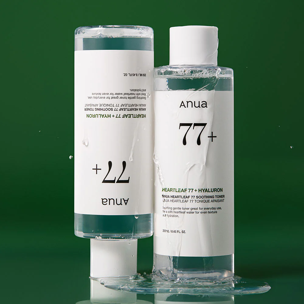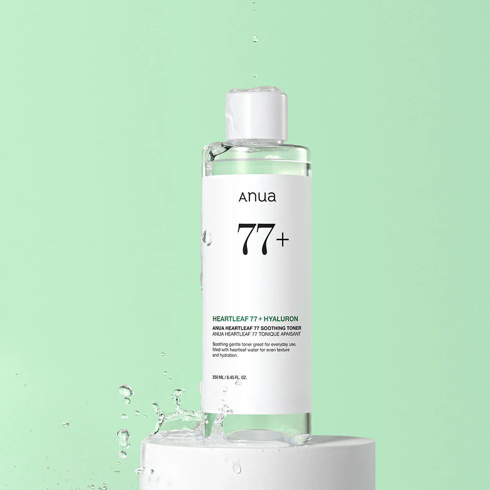 ANUA Heartleaf 77 Soothing Toner 250ml This popular, gentle toner is enriched with Heartleaf Water 77% extract, helping to soothe, smooth, and hydrate the skin. It's ideal for daily use for healthy-looking skin.