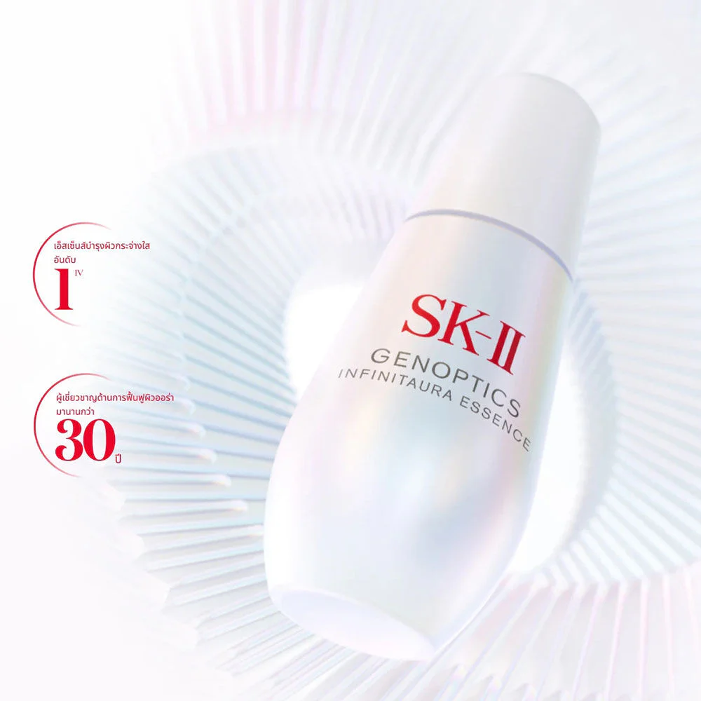 SK-II Genoptics Infinitaura Essence 50ml Essence for brighter skin. The newly developed formula is quickly absorbed and not sticky. With advanced Genoptics Aura technology, it helps reduce dark spots, restore dull skin, and even out skin tone. Combined with chamomile extract, lotus extract, and Niacinamide, it helps restore skin to be soft, smooth, and radiant. Reveal smooth, youthful, radiant skin with an aura.