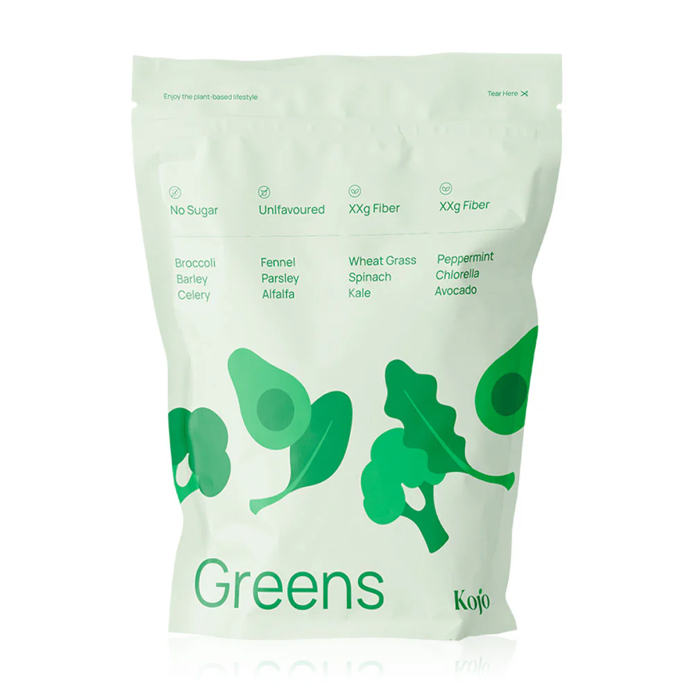 KOJO Greens 150g Dietary supplement, packed with natural nutrients and combining fiber from a variety of green leafy vegetables, no flavoring, no artificial flavoring and no added sugar.