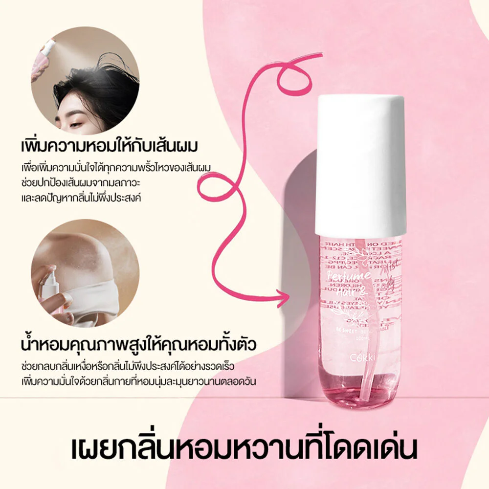 cokki Hair & Body Perfume Mist 100ml Add an unforgettable charm with this perfume spray for hair and body. It helps mask sweat odor and reduce unpleasant odors, giving off a sweet, gentle scent like walking in a field of flowers.
