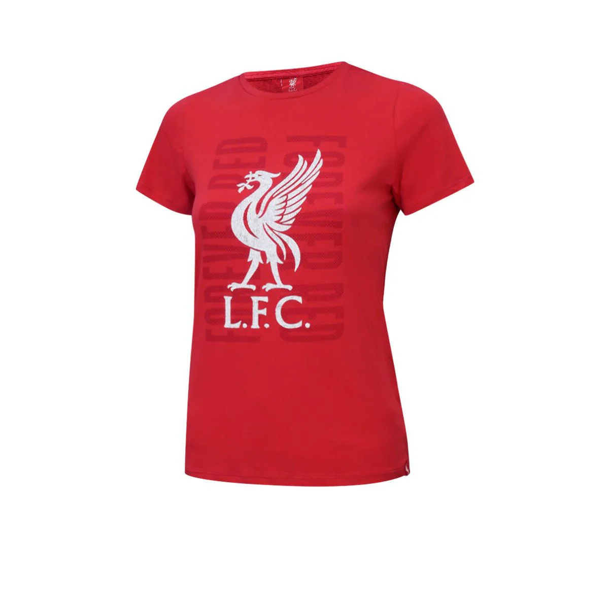Red short sleeve tee with Forever Red print in Dark Red behind White Liverbird & LFC emblem