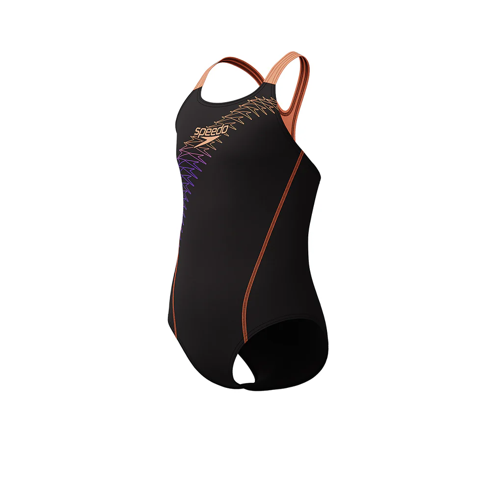 Get junior training off to a confident start with the SPEEDO Medley Logo Medalist Girls Swimsuit. Designed with vibrant colour-pop straps and a bold Boom logo, this classic black swimsuit combines sporty style with performance comfort. The Medalist back allows flexible shoulder movement, while EnduraFlex fabric with CREORA® HighClo™ ensures long-lasting fit and durability.