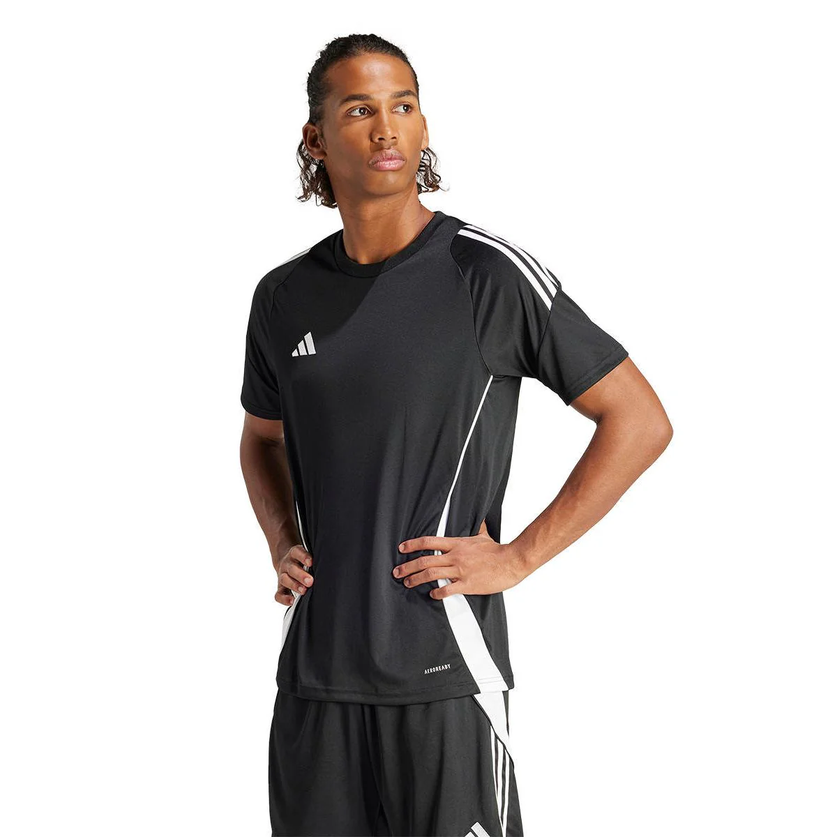 From pre-match warm-up to final whistle, this ADIDAS Tiro 24 men's football t-shirt is built to support your game. Made for athletes in motion, it keeps you comfortable thanks to its moisture-wicking AEROREADY. Those floating 3-Stripes on the shoulders and that embroidered 3 Bar Logo add the perfect football finish to your look.