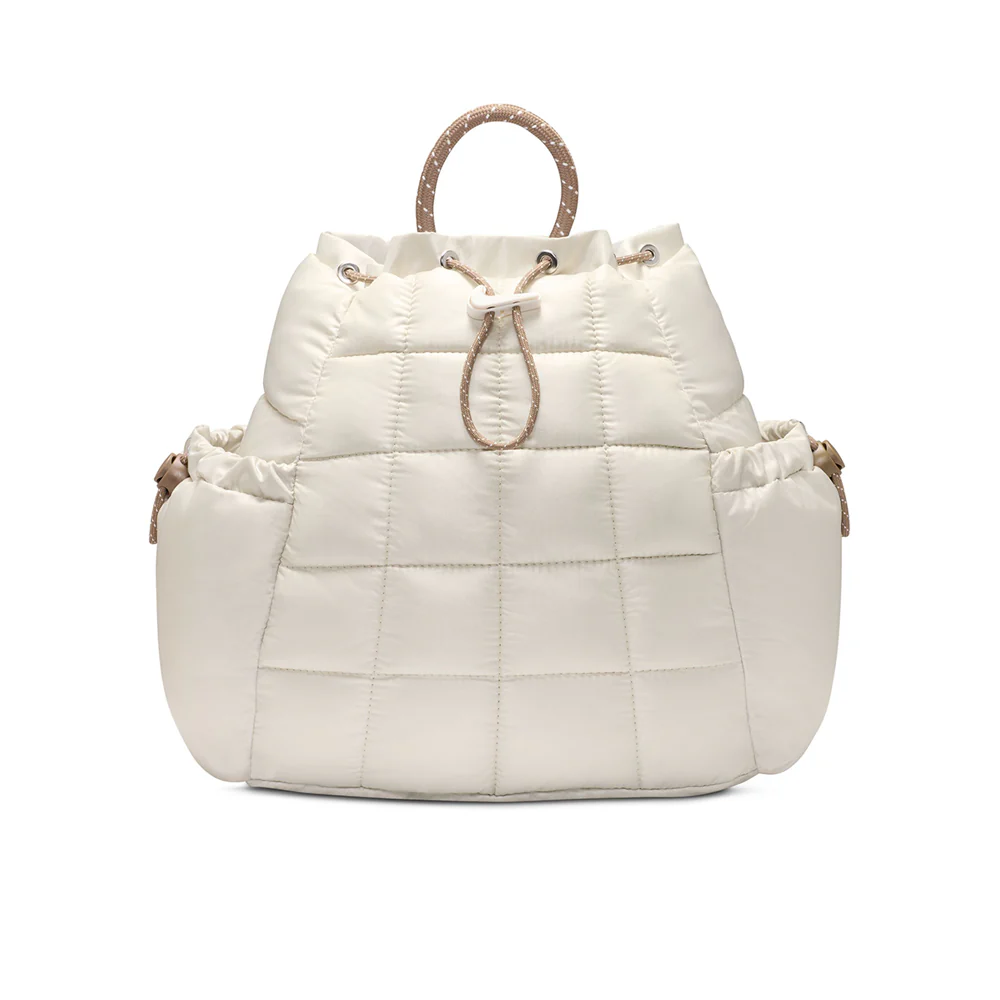 Carry your stuff in style. This NIKE Sportswear Puffle Unisex Backpack features luxe materials and a puffer design. The large, main compartment has a cinch closure with Swoosh logo cord lock to secure your belongings. Cinched side pockets help keep you organized.